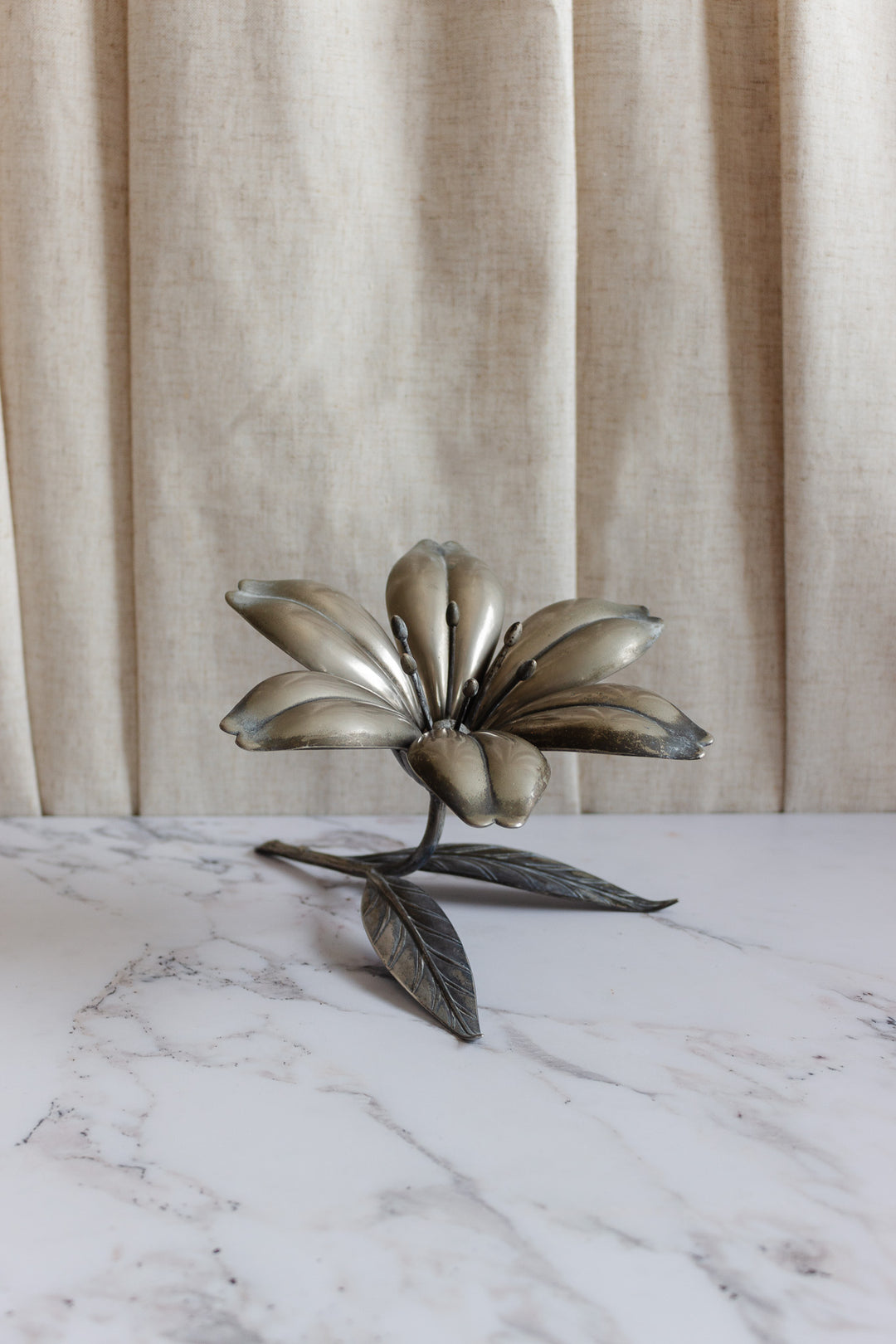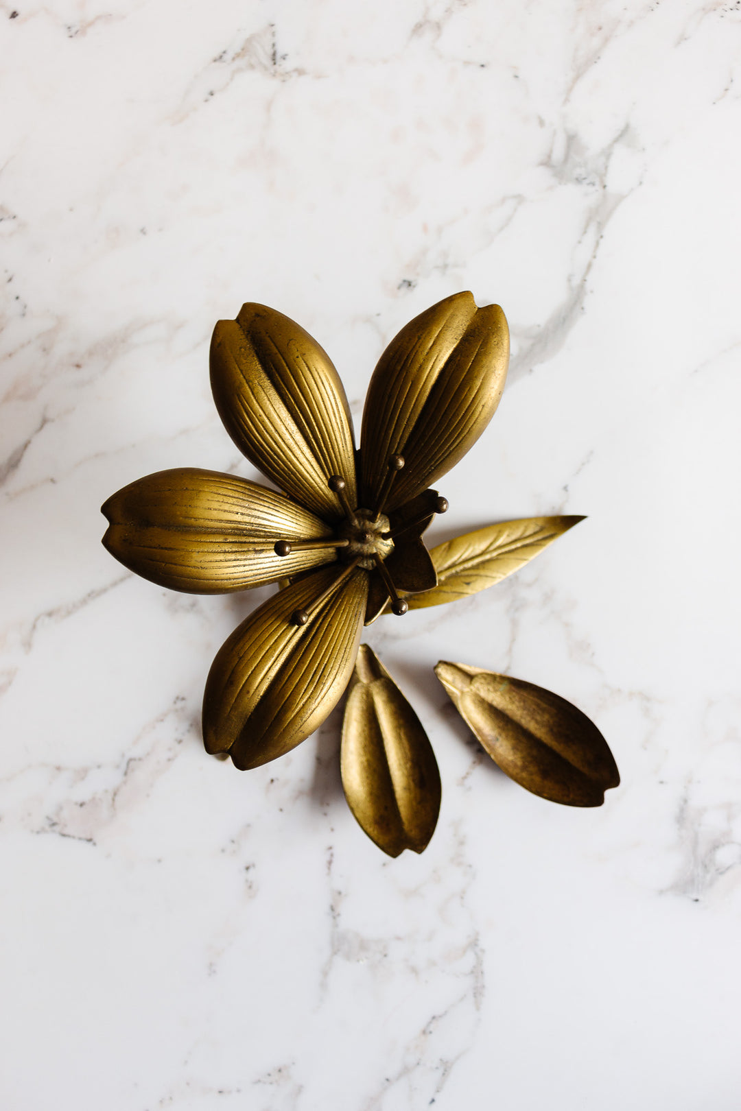 midcentury Italian brass lotus sculptural ashtray & candleholder