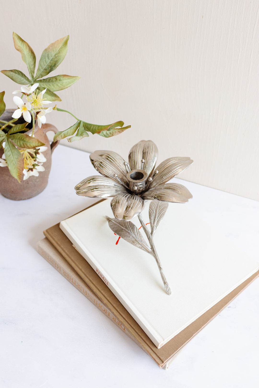 midcentury Italian white brass lotus sculptural ashtray & candleholder