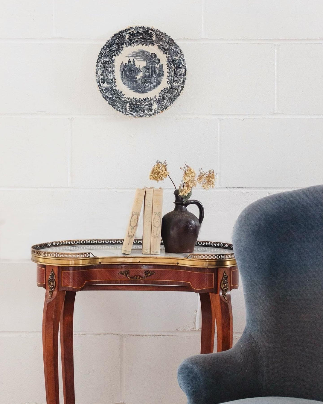 pair of vintage French Louis XV marble top side tables
