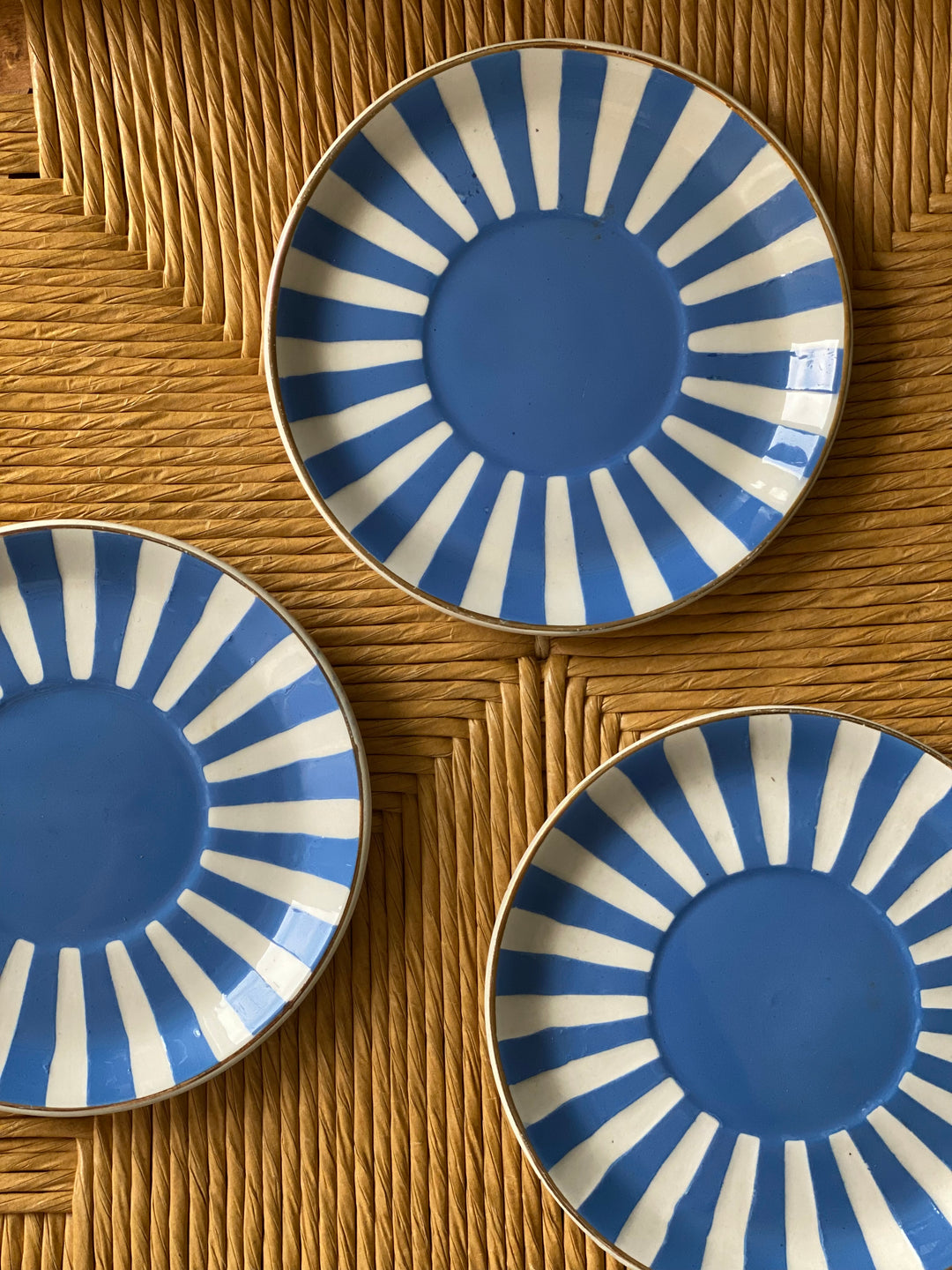 rare 1920s French Sarreguemines art deco striped plate set