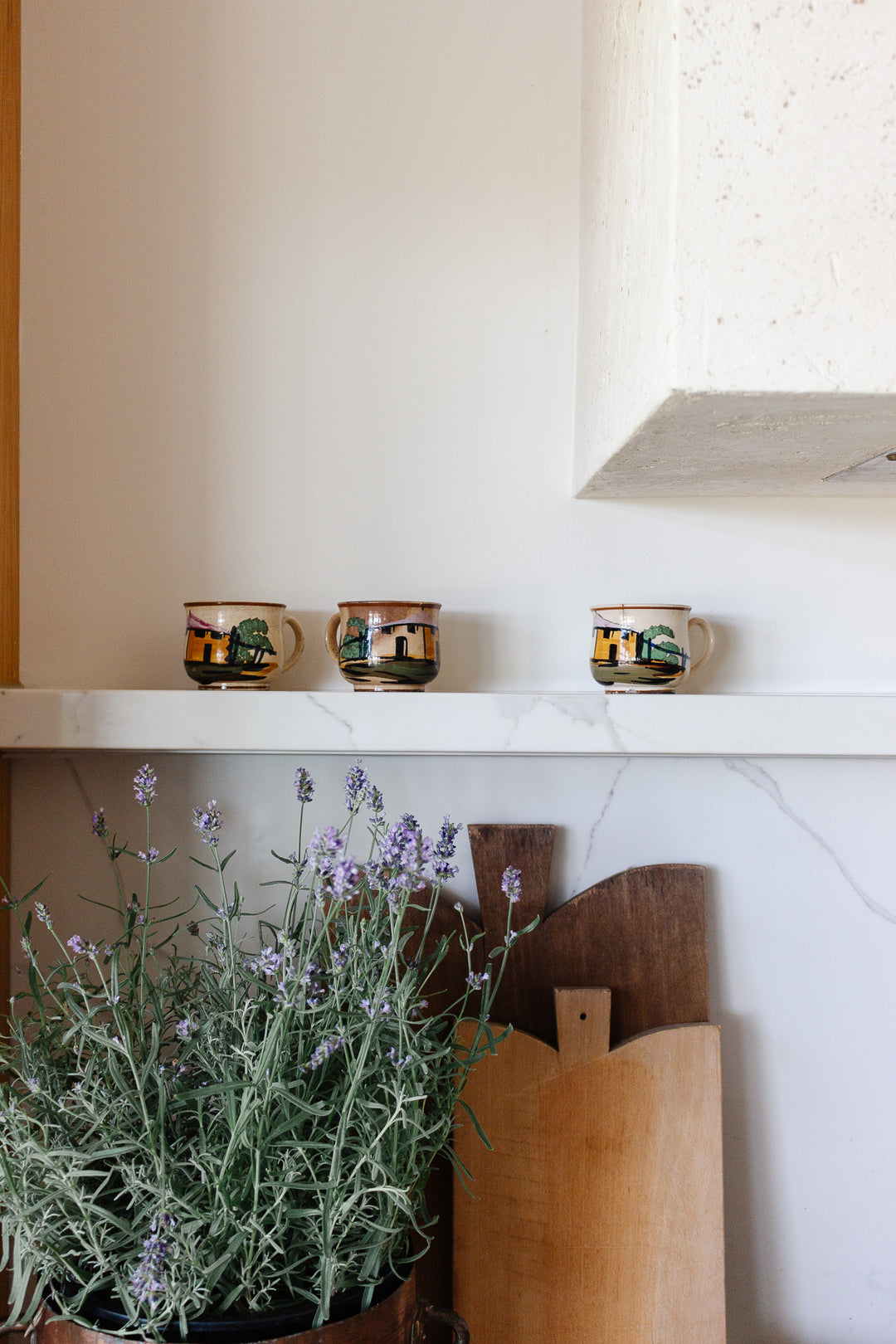 rare 19th century French Jules Vieillard pottery hand painted village cup set