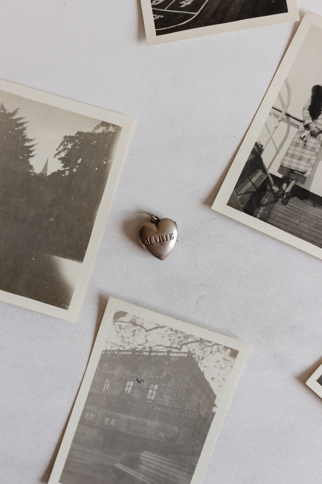 rare antique french “ex voto” solid silver coeur de marie pendant