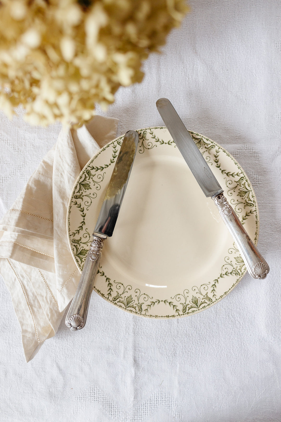 rare turn of the century French stamped silver knife set, C. Detouche Paris