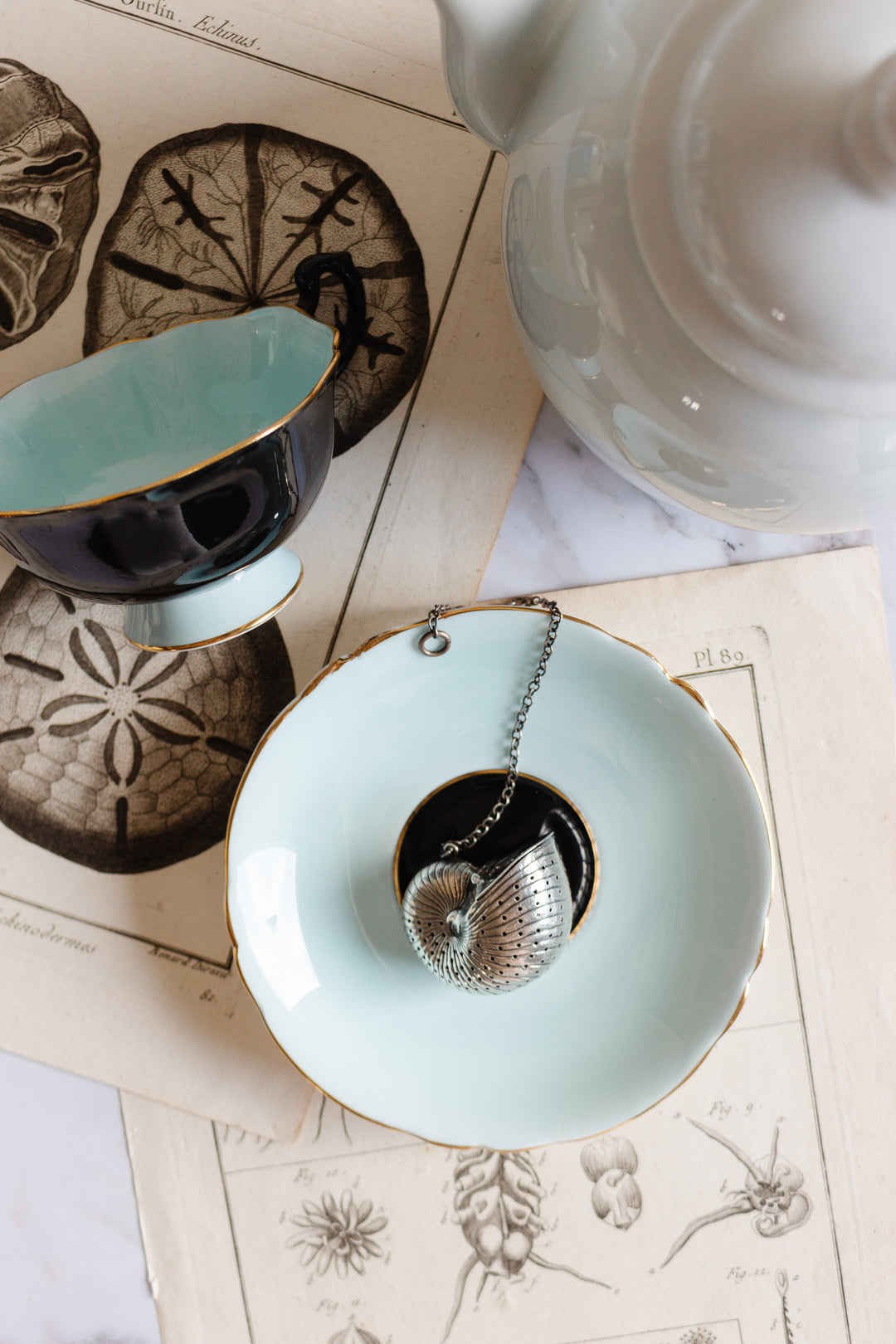 rare turn of the century Birmingham sterling silver nautilus tea strainer with monogram
