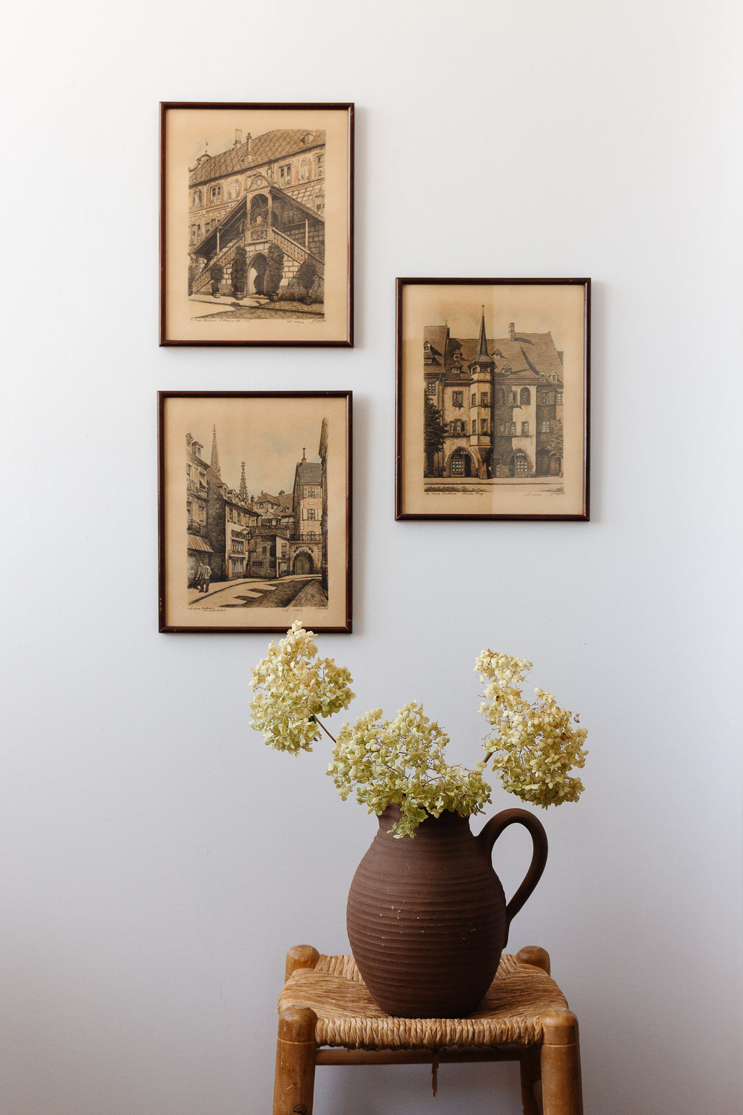 set of 1940s French framed lithographs, “le vieux Mulhouse”
