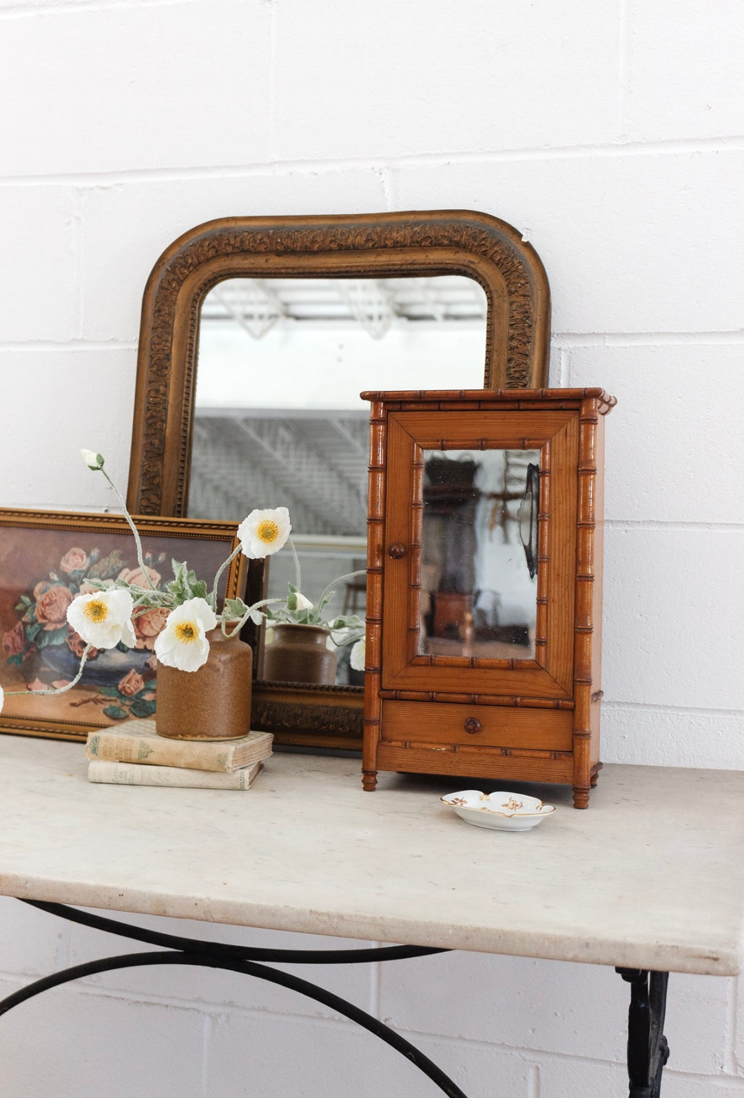turn of the century French salesman sample faux bamboo chevet with marble top