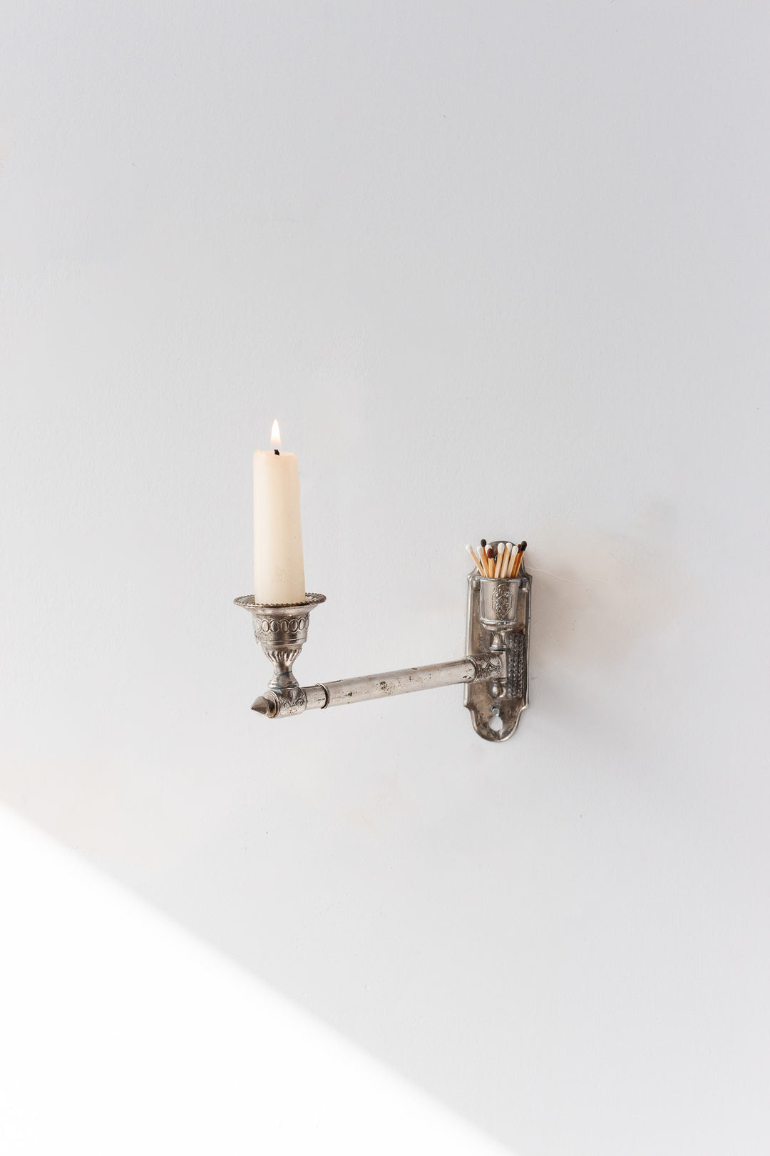 turn of the century French SG Paris silver gilt extendible piano sconce with match holder