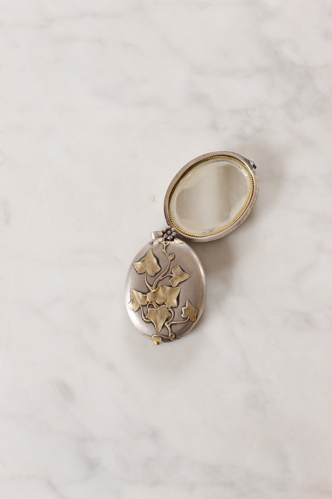 turn of the century French silver repousse art nouveau mirrored slide locket