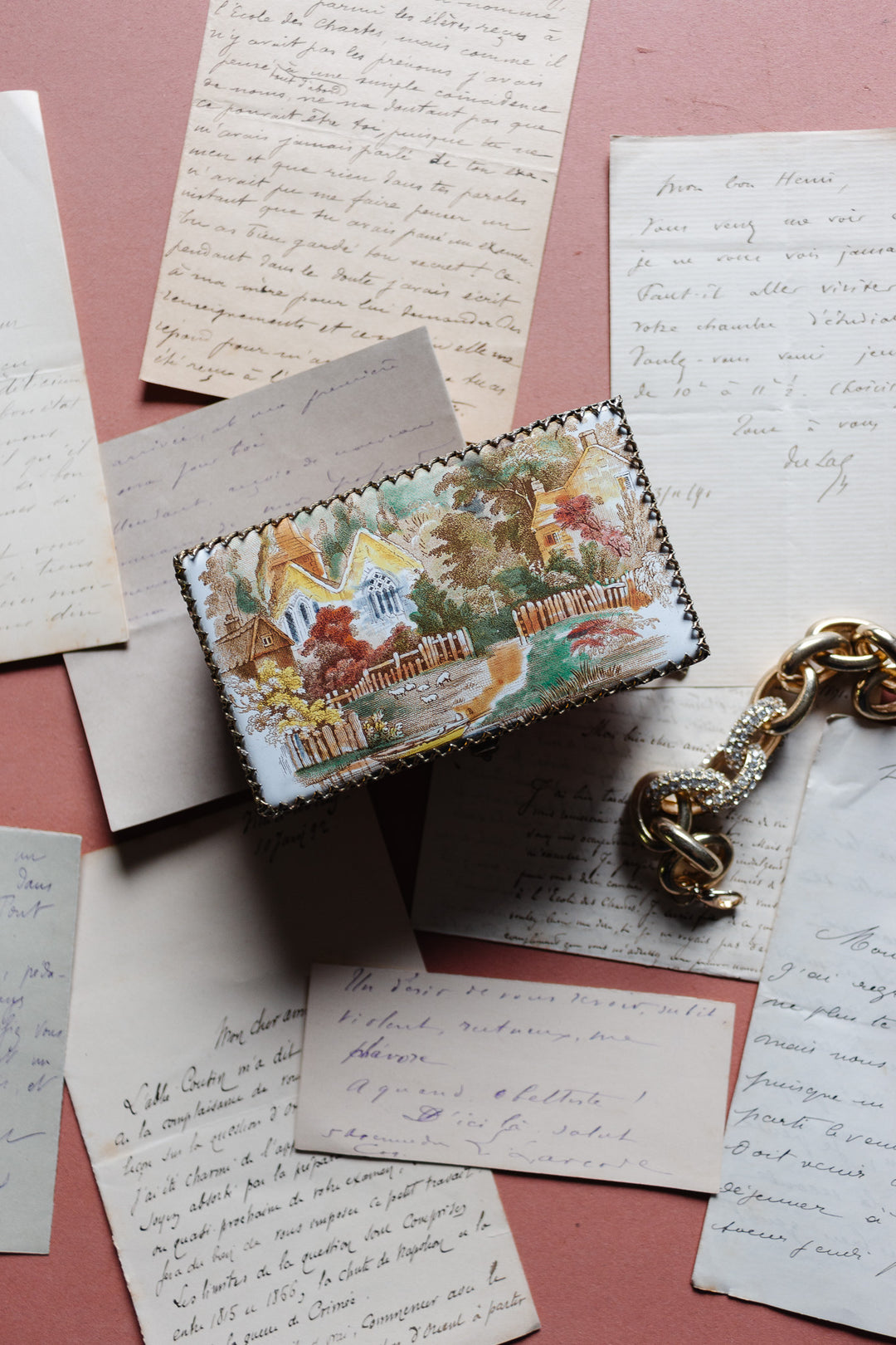 vintage french "la vie quotidienne" hand painted brooch