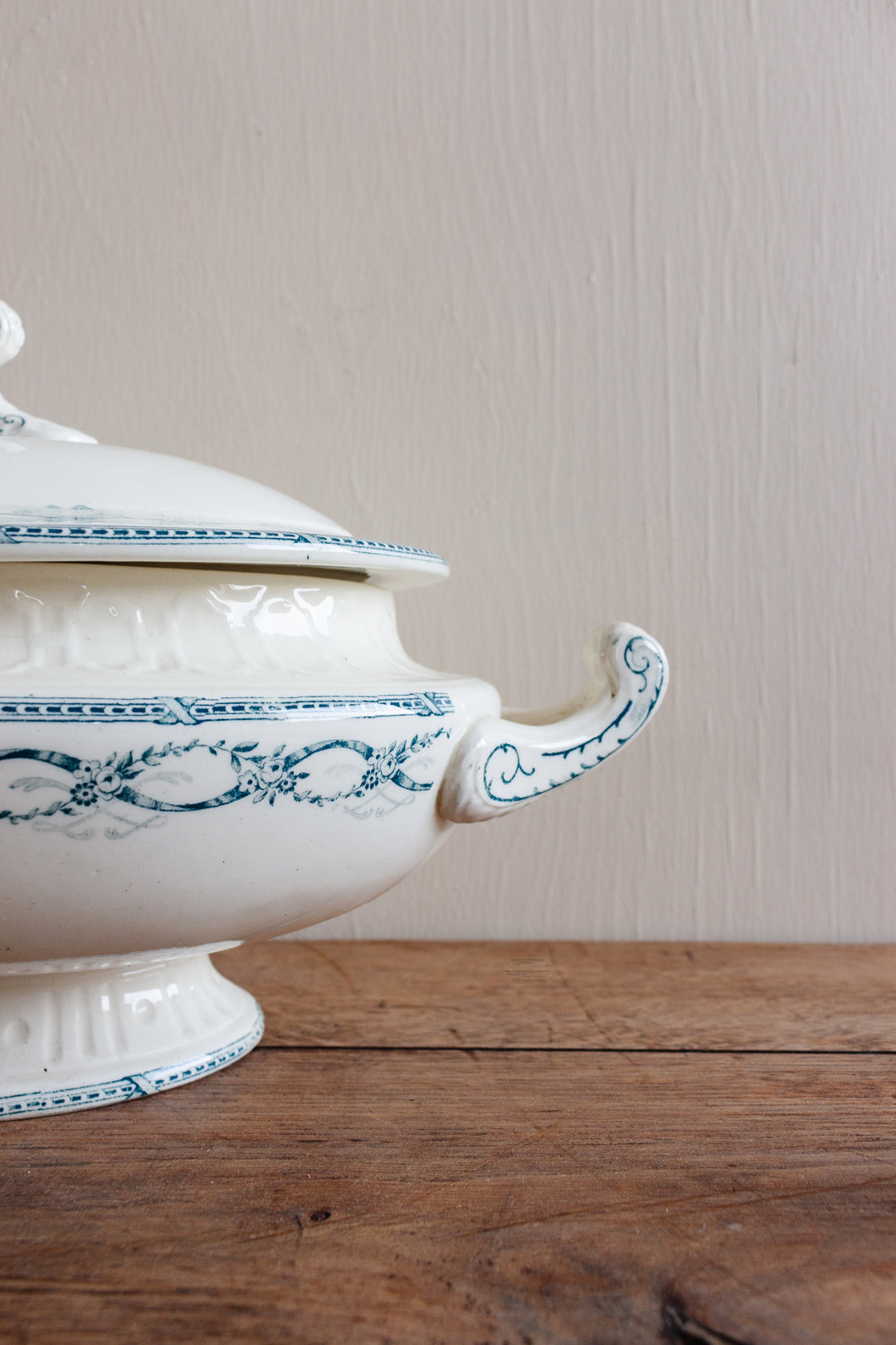 antique french transferware "guirlandes L. XVI" bowls, set of 12