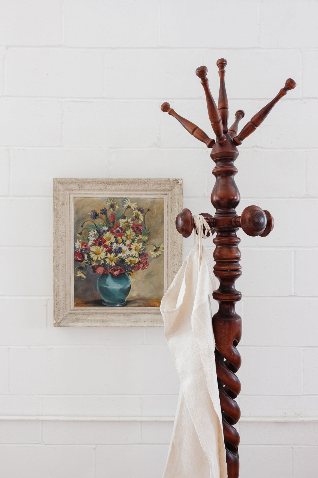 Antique lithograph, “dame chatelaine”, with hand painted gouache accents