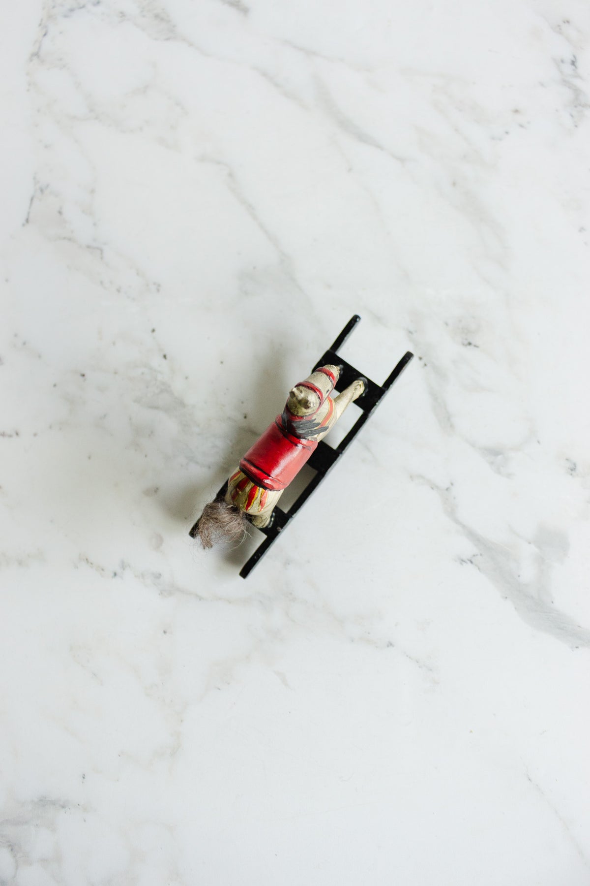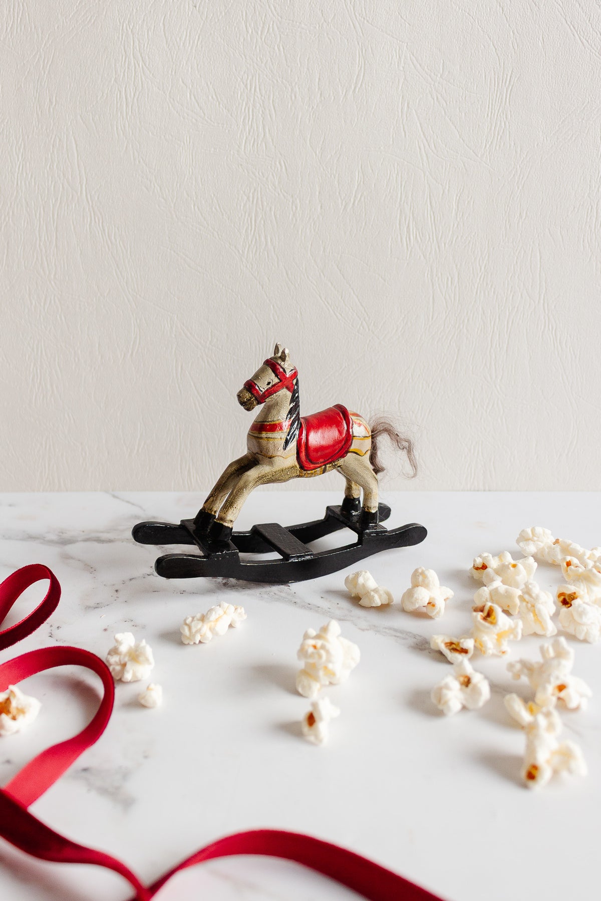 A charming antique wooden rocking horse sourced from a market in Bamberg, Germany. Beautifully hand-carved with a warm patina and detailed features, this piece retains its original horsehair tail! A unique and highly collectible piece perfect for a nursery, mantle, or as a gift!