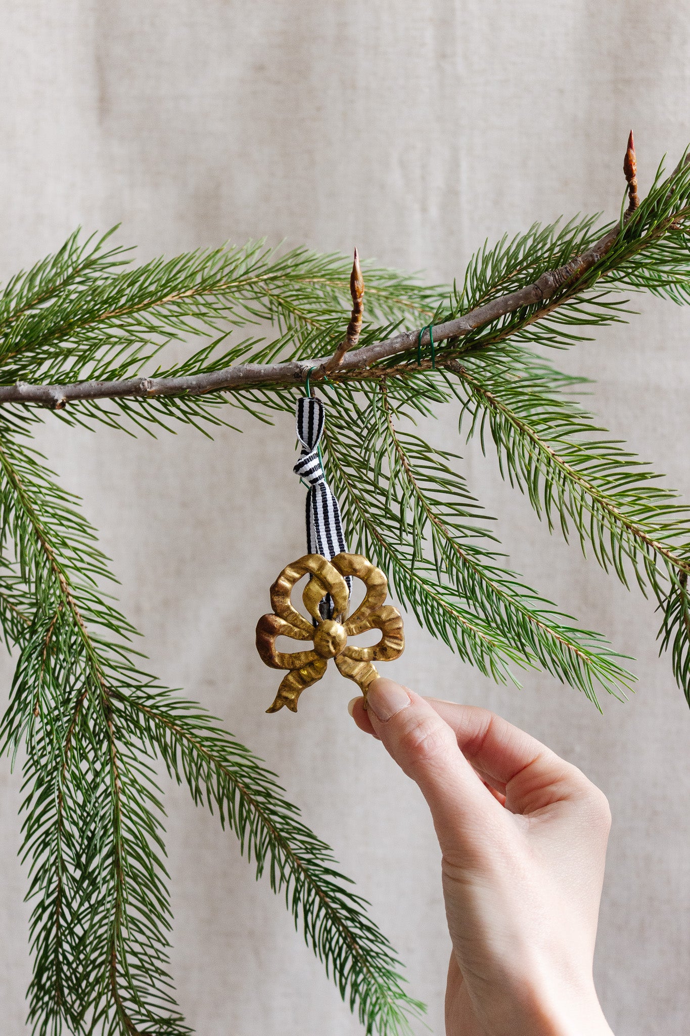 These petite metal bows were sourced from brocantes across the South of France and were originally used as cache-clous—ornamental covers designed to hide the nail heads that held artwork or mirrors in place. Each bow is beautifully shaped to mimic real ribbon, with delicate folds and a soft sense of movement that makes these tiny pieces surprisingly expressive.