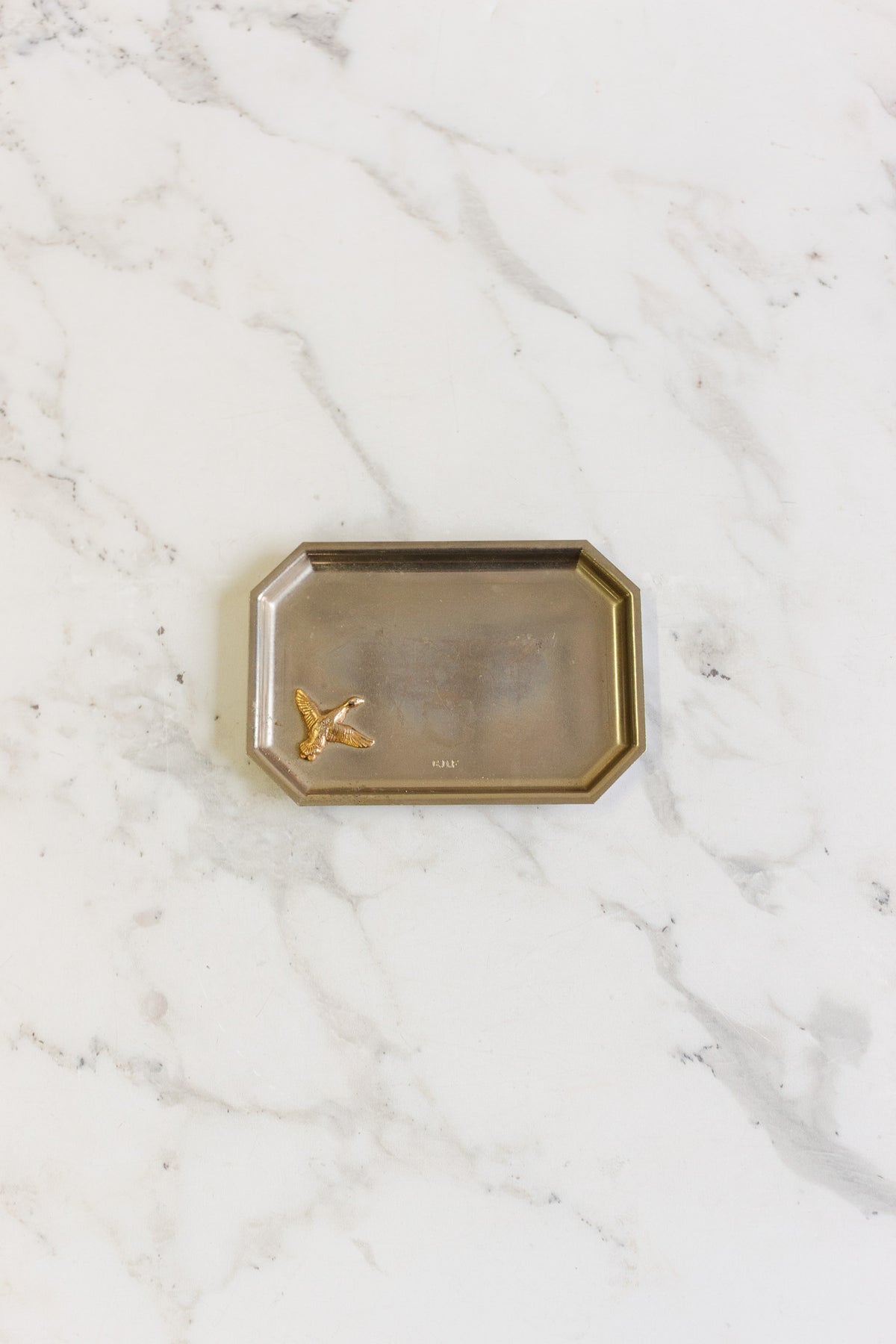 A sweet and simple tray sourced from a brocante in Le Mans with a golden duck detail. It would work well to hold business cards, jewelry, or curiosities !