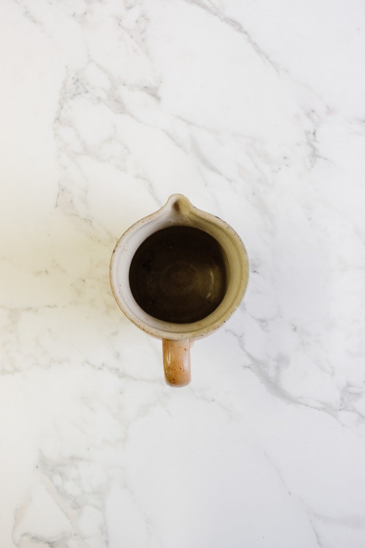 A classic vintage French stoneware pitcher, sourced from a brocante in Marseille, and showcasing the understated charm typical of traditional French pottery. The neutral-toned glaze highlights the natural texture of the clay, giving it a grounded, rustic presence.
