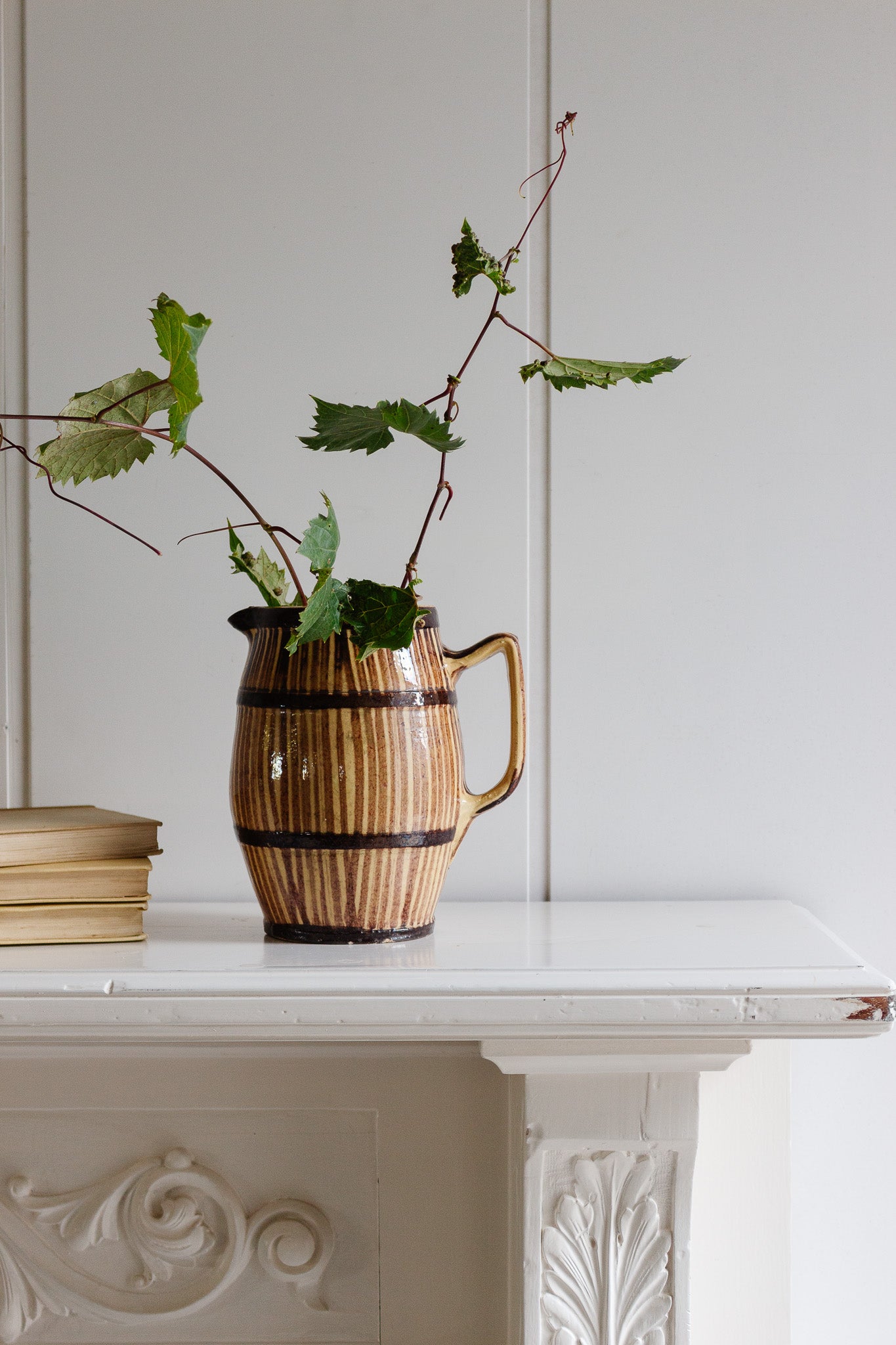 A classic French mustard pot sourced from a brocante in Marseille.  Beautifully decorated, it is ideal on a shelf or countertop and is perfect for a few small blooms.