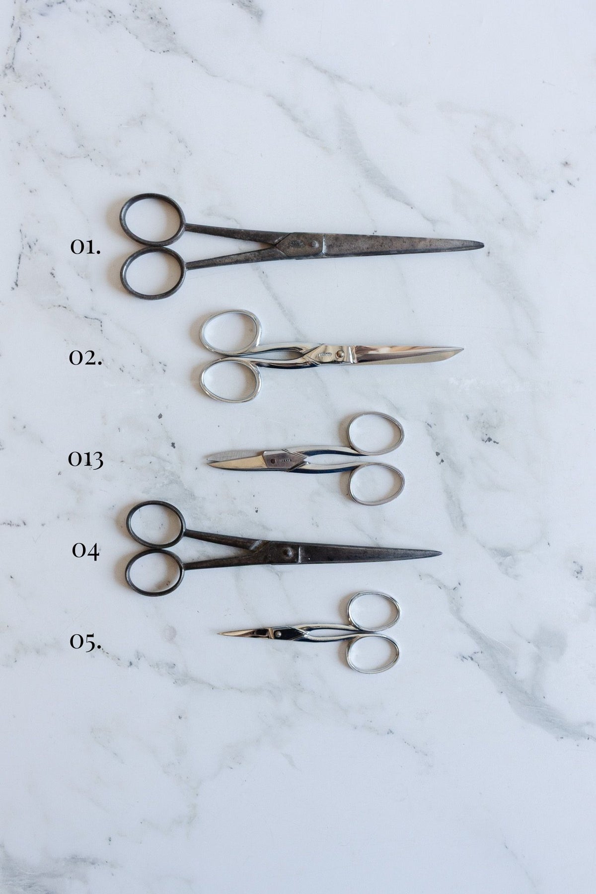 Antique sewing scissors, also known as "ciseaux de mercerie" in French, are small, finely crafted scissors designed for delicate sewing tasks. They are usually made from high-quality steel or iron, sometimes with gilded or silver-plated handles. Handles often featured intricate designs, such as floral patterns, animal shapes (like storks), or Art Nouveau motifs.Designed for precision, with sharp, pointed blades for cutting thread, fabric, or embroidery.