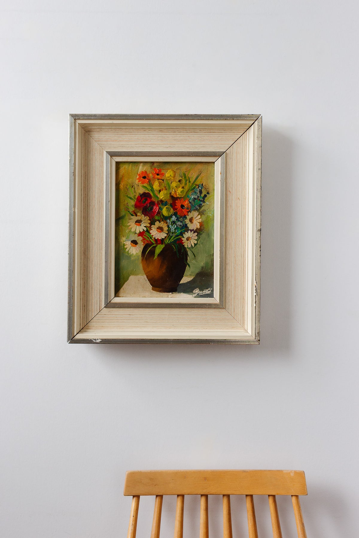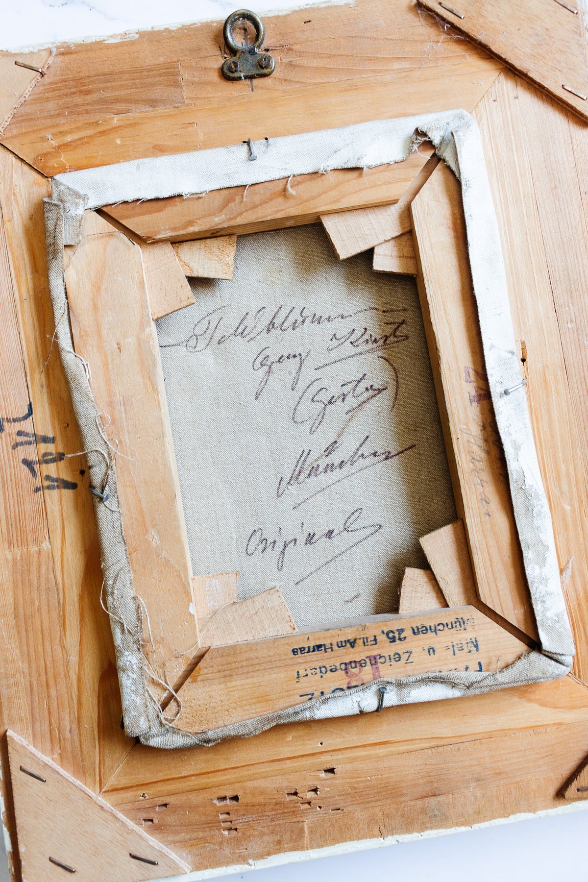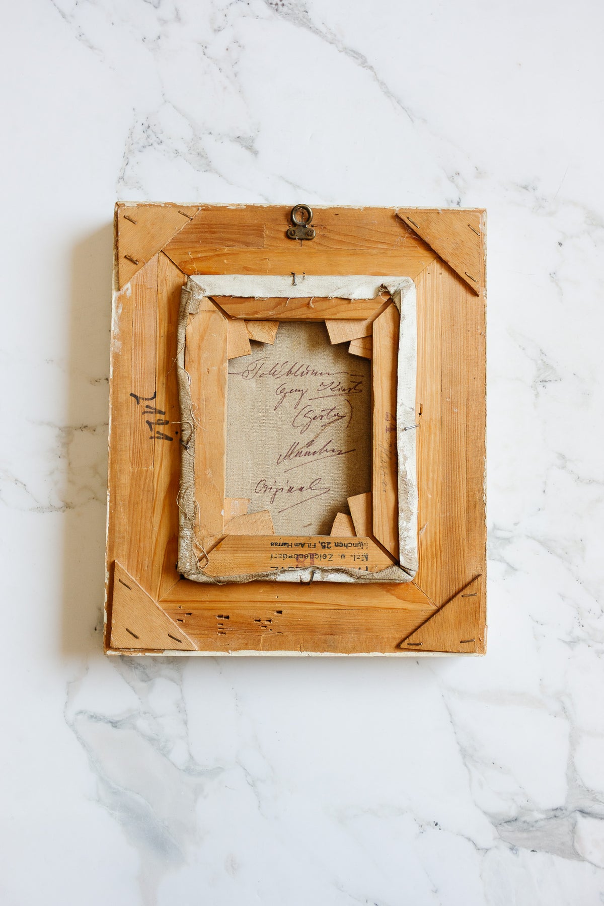 A stunning vintage German painting of a classic bouquet that we found in a market in Bamberg. On the back the artist has signed his name and wrote that this original piece was painted in Munich. We love the classic framing and would love to see this piece hung in a gallery wall.
