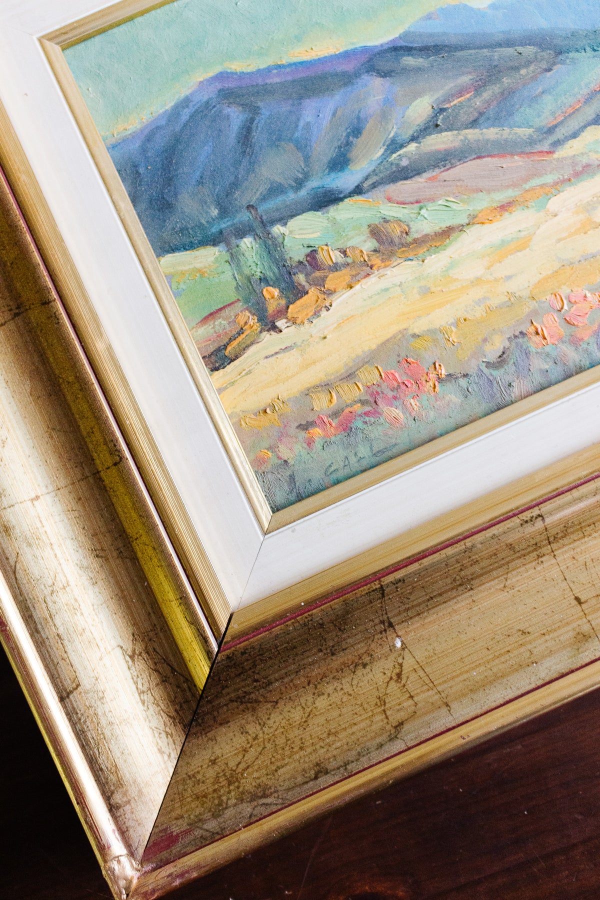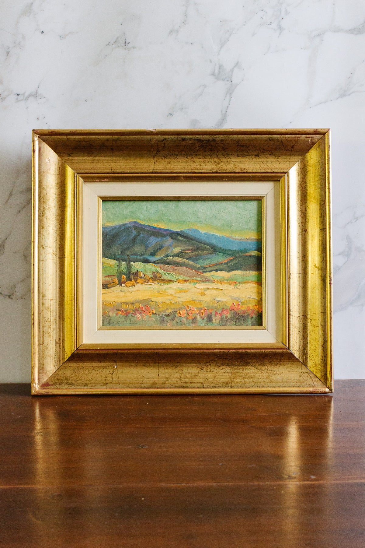 A soft and dreamy landscape in warm colours in a classic gilt frame. We love the aura and presence of this quintessentially French piece. Sourced from a brocante in Marseille.