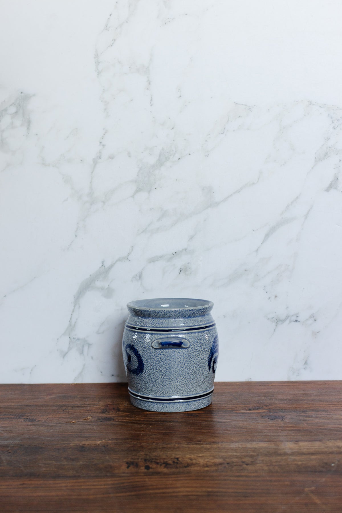 Vintage German salt cellar by Marzi & Remy. Hailing from the Westerwald region famed for salt-glazed stoneware, this piece showcases the subtle, tactile charm of German ceramics—whether adorned with cobalt decoration or left in raw clay tone. Compact and purposeful, it’s ideally sized for holding salt or small condiments, or used as a sculptural accent in a tabletop vignette.