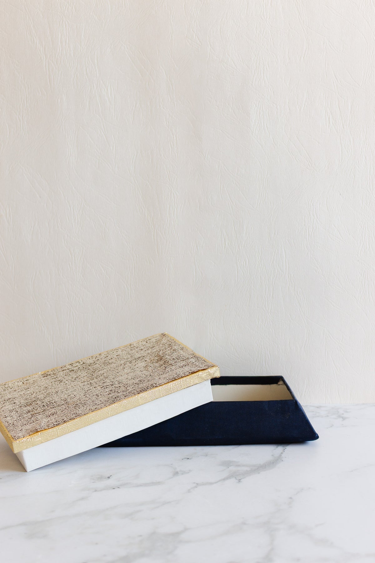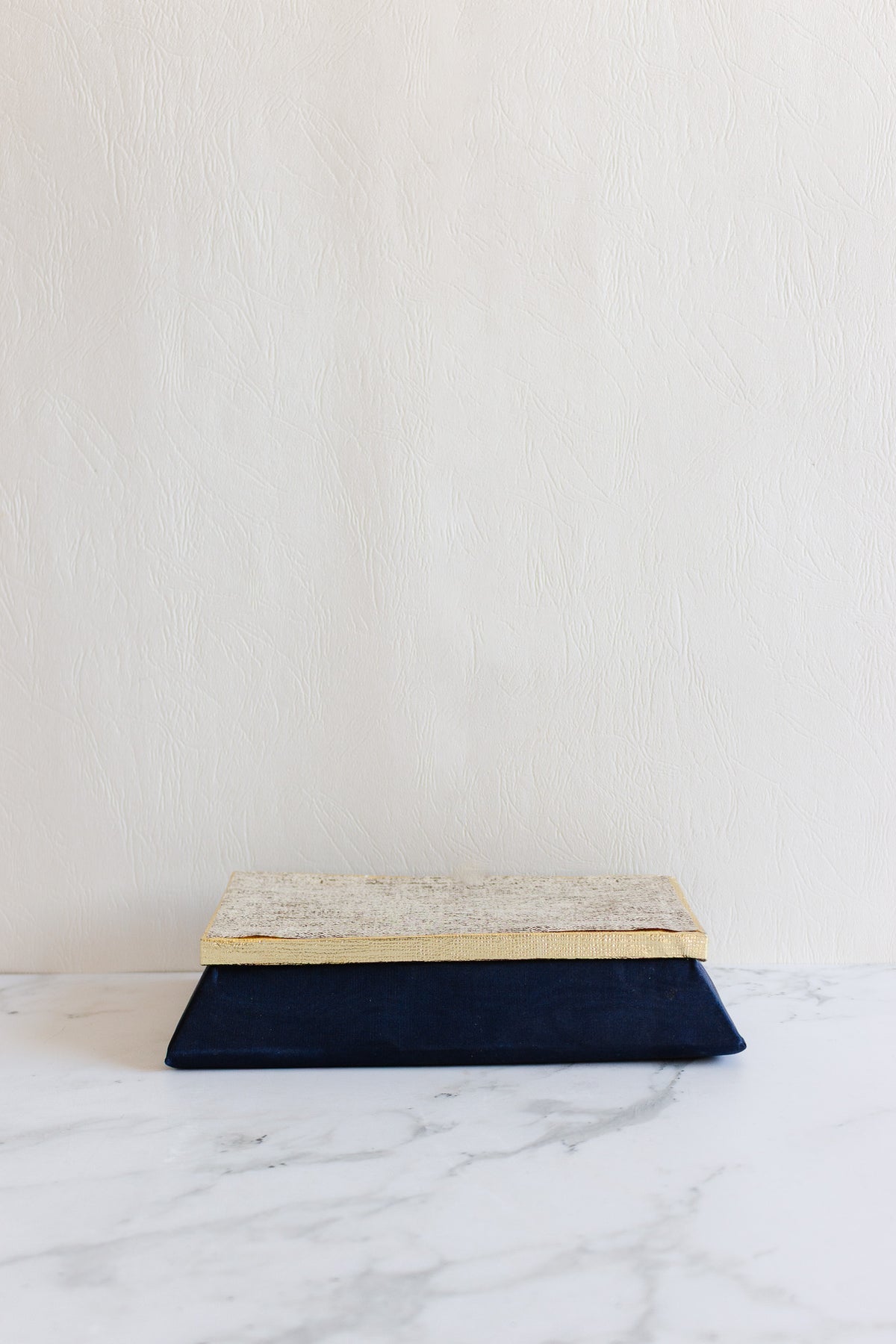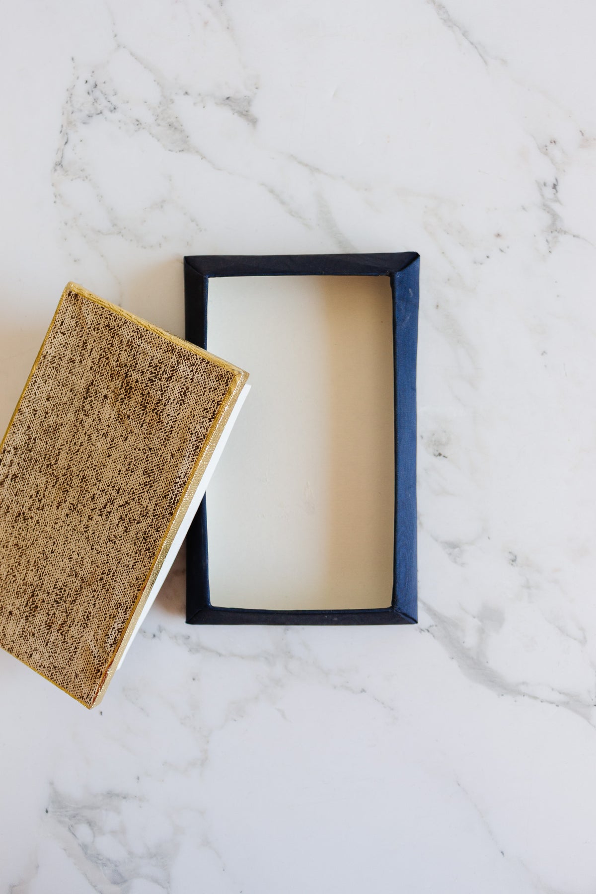 This fabric and board gift box was found in a video grenier in La Capte. This box was the perfect fit for gloves, a framed photo, or even chocolates! We love the rich, deep, navy blue and the unique shape.