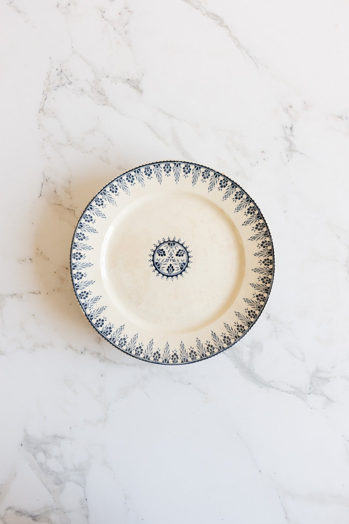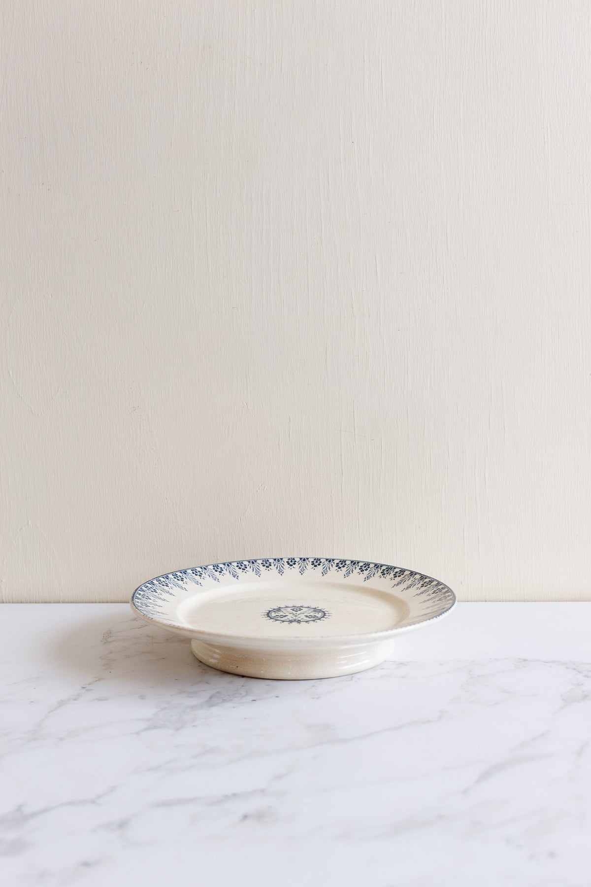A sinple and classically French cake stand with a low profile made by Sarreguemines. This piece is a must have for your table and comes in a highly desired blue and white.