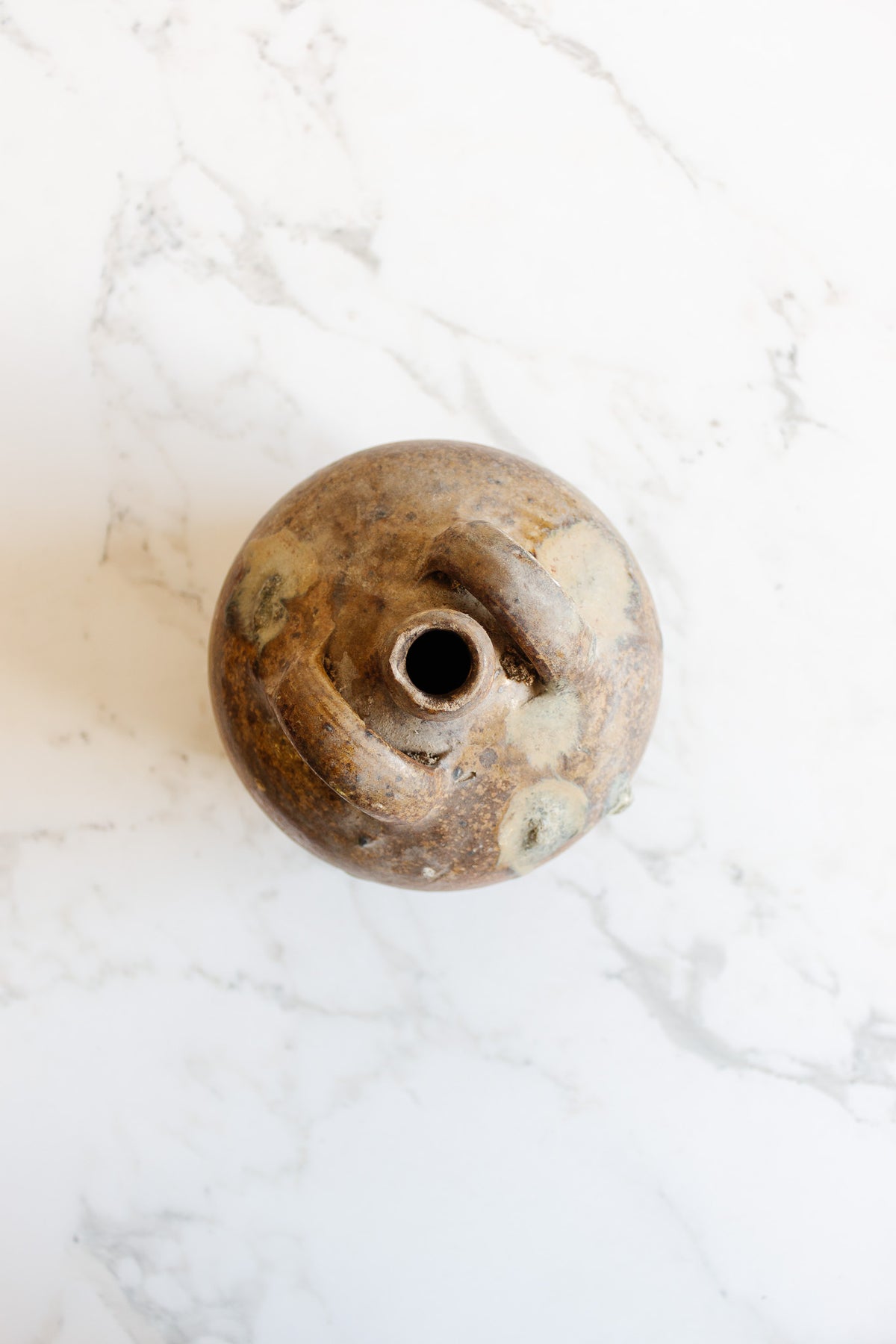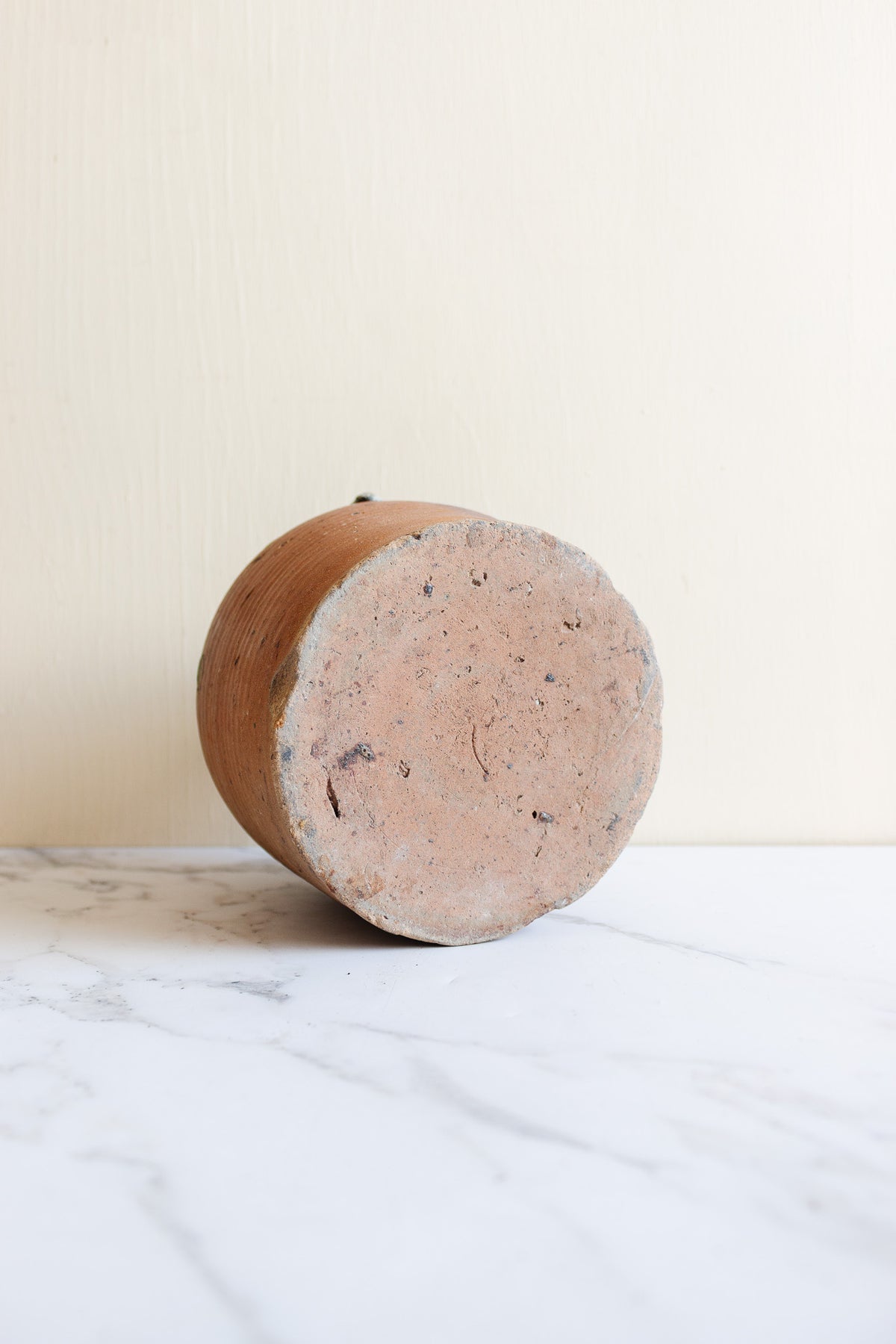 A unique conversation starter, this antique French provincial pottery has a unique shape and thick glaze. It would be beautiful as a decorative piece on a shelf or desk, or add a flower and use as a bud vase. Sourced from a brocante in Marseille.