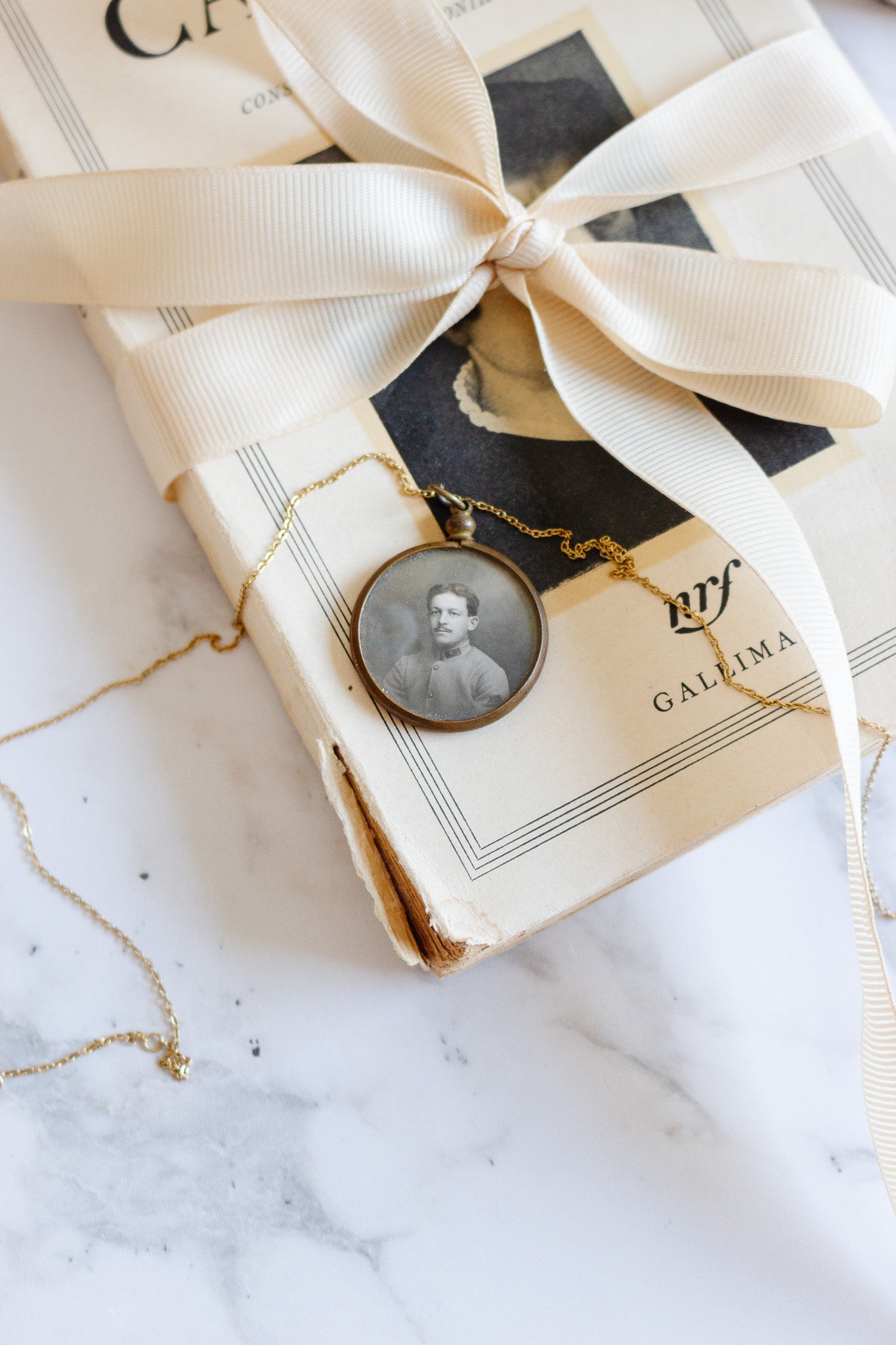 This 19th century French portrait brooch features an antique gilt metal setting and a timeless photograph of a family patriarch.