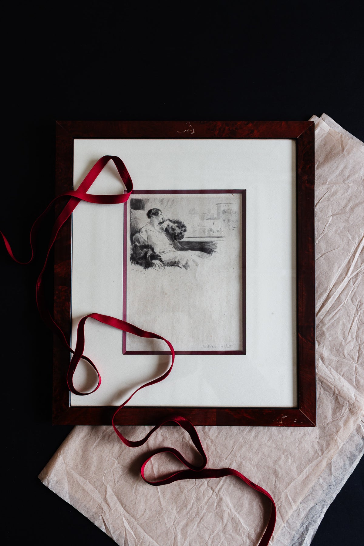 Not only is this artwork beautifully done, but it has the most intriguing framing.  The negative space with the artist's signature far below the drawing is unusual and beautiful.