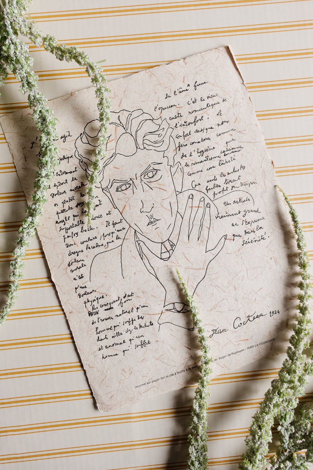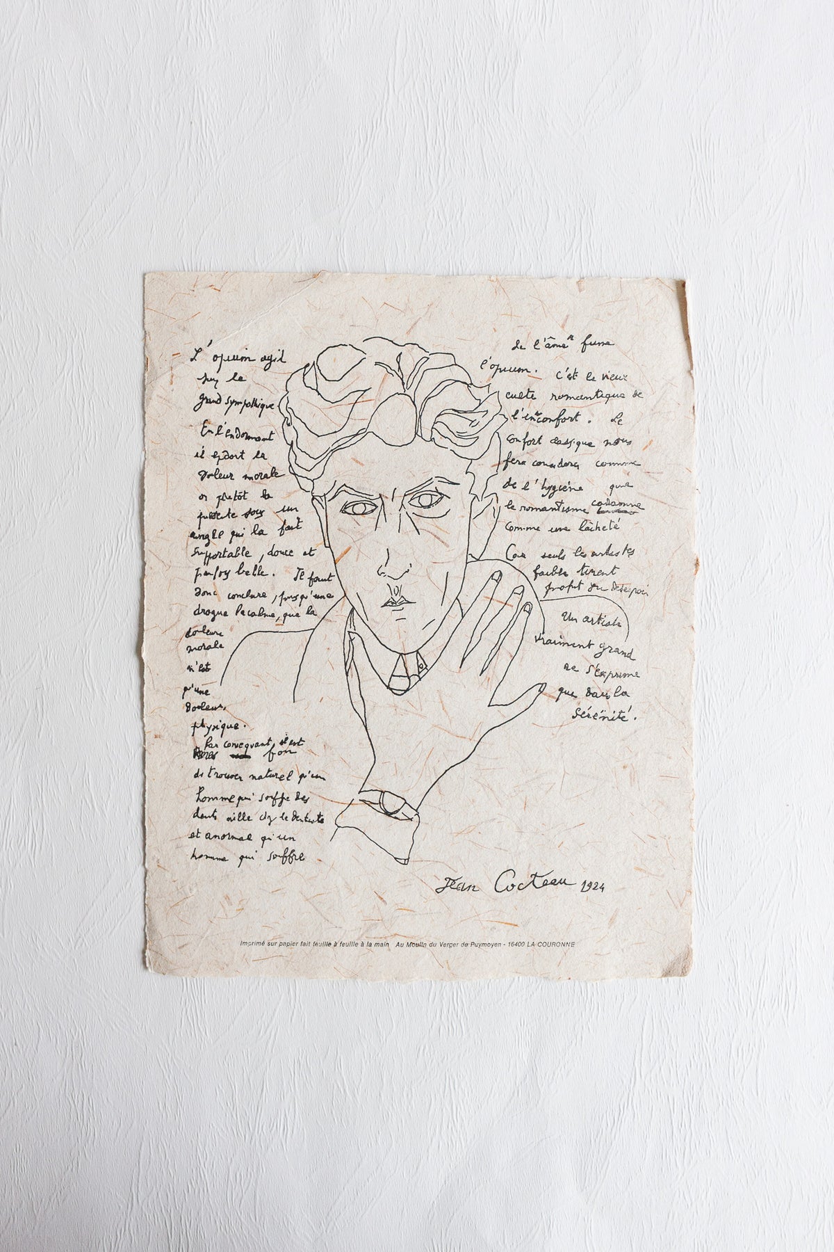 This 1924 lithograph, Le mystère de Jean l’Oiseleur, is by Jean Cocteau, reflecting his distinctive line work and symbolic imagery, and is printed on handmade paper. The composition captures Cocteau’s poetic visual language, where mythology, theatre, and the surreal intersect, making it a compelling piece for collectors of French modernism and literary art. Dating to a formative period in his career, it works equally well framed as a statement artwork or integrated into a layered gallery wall.