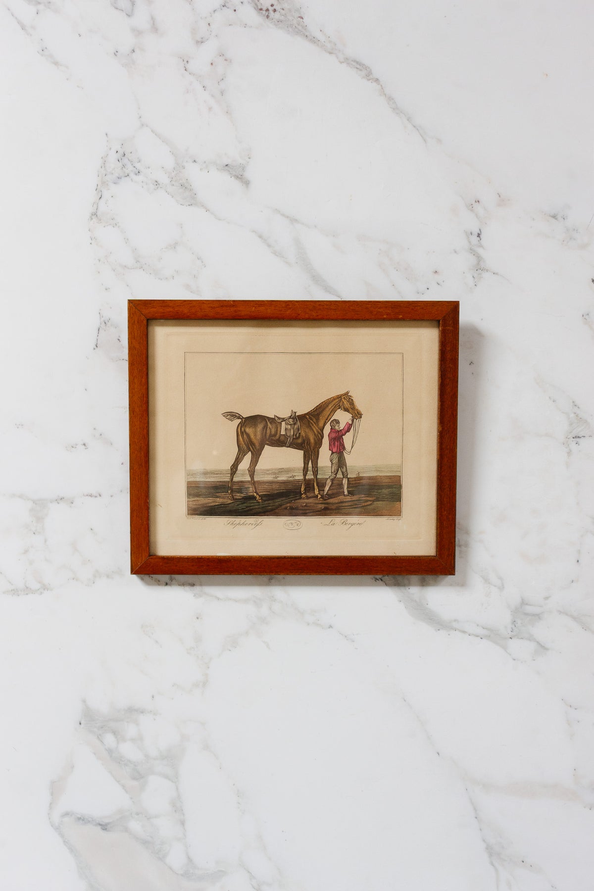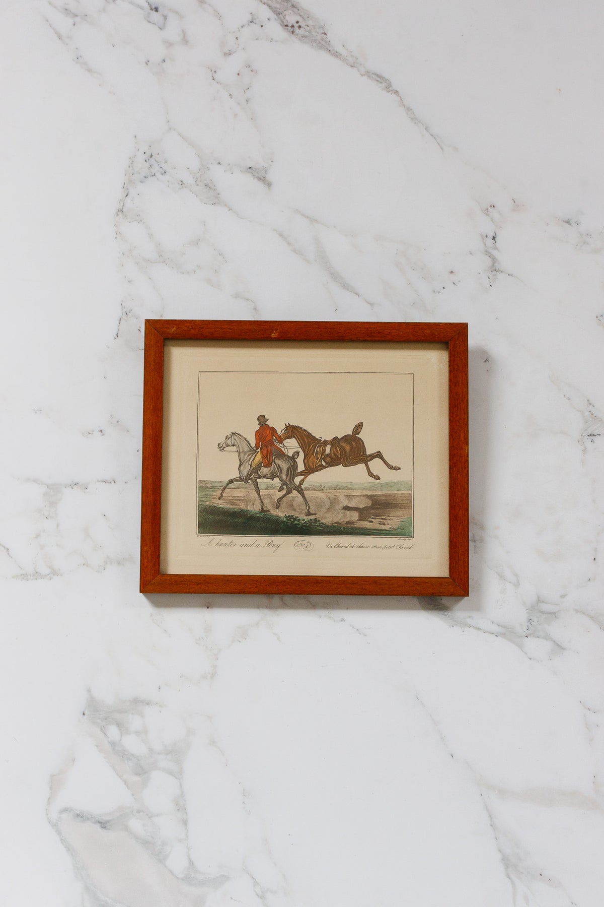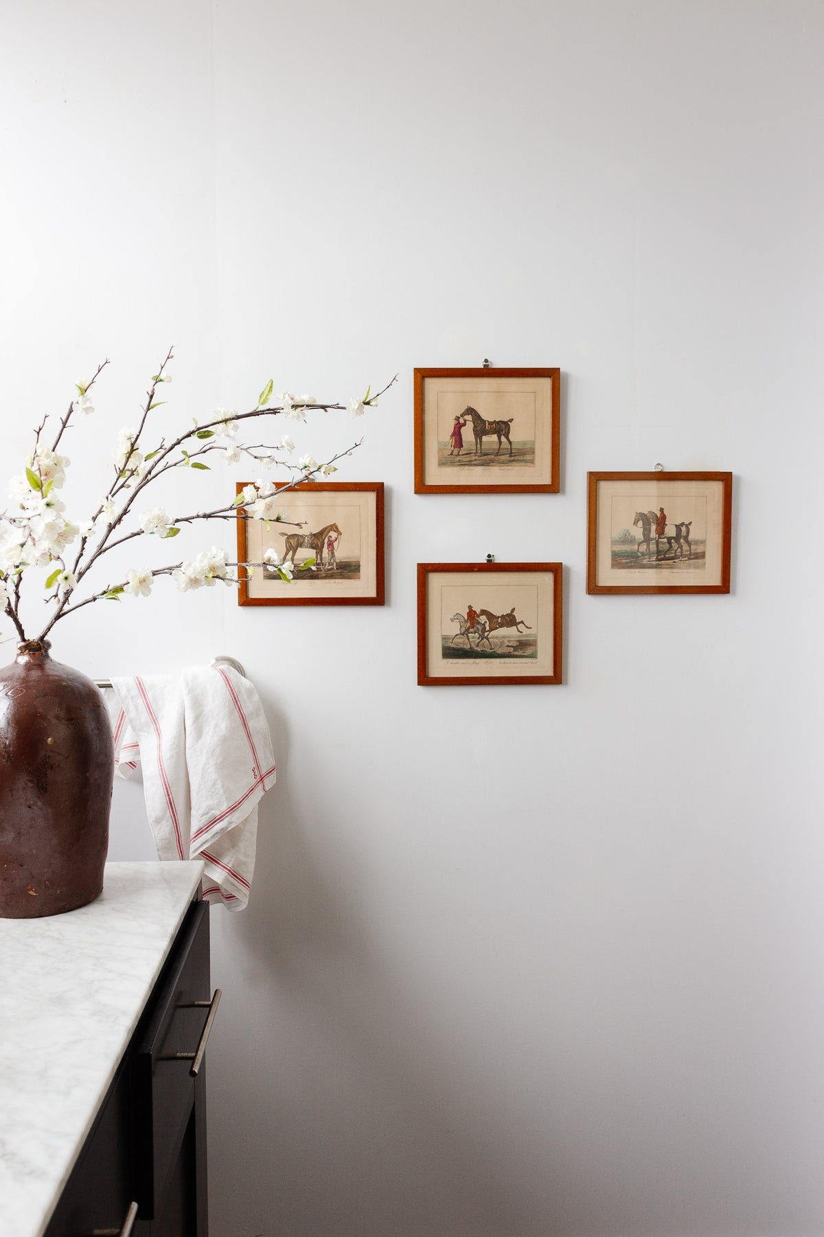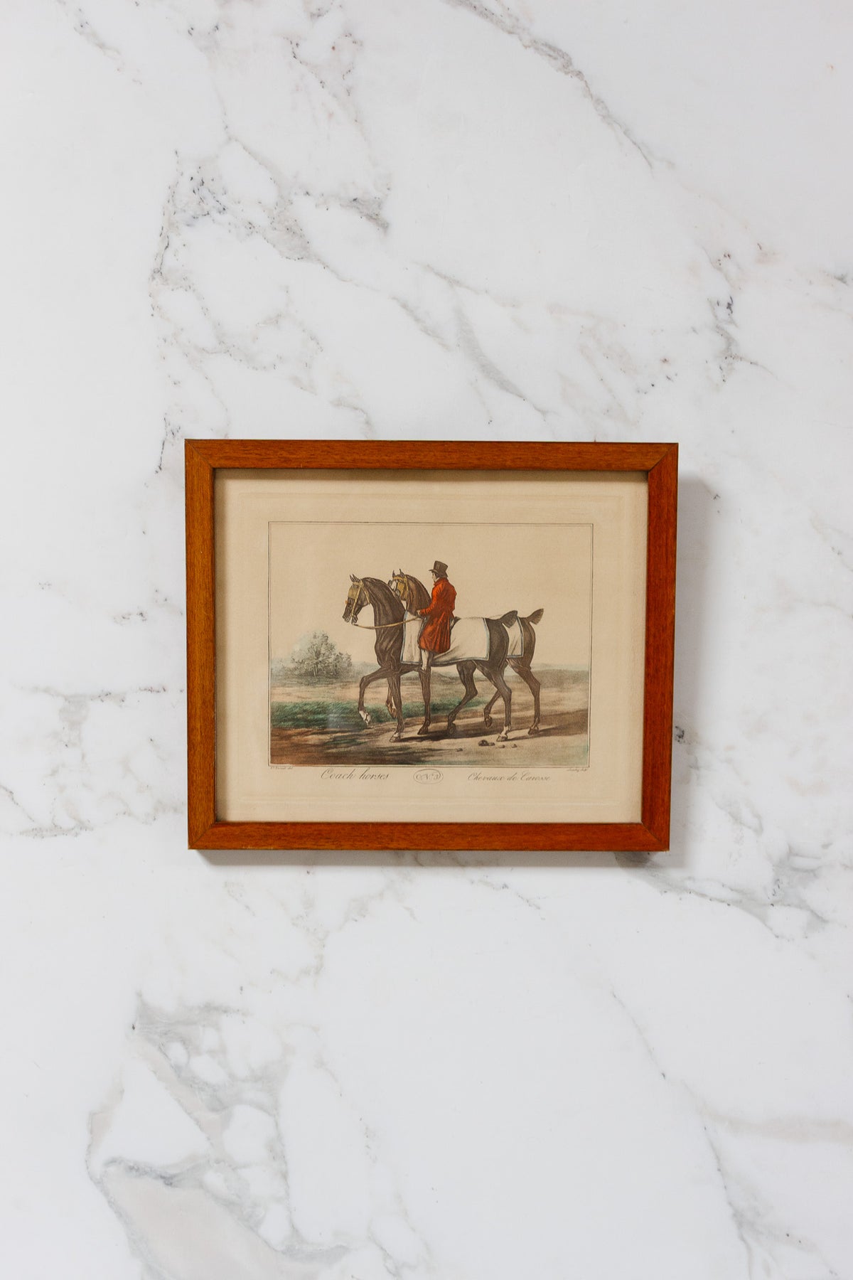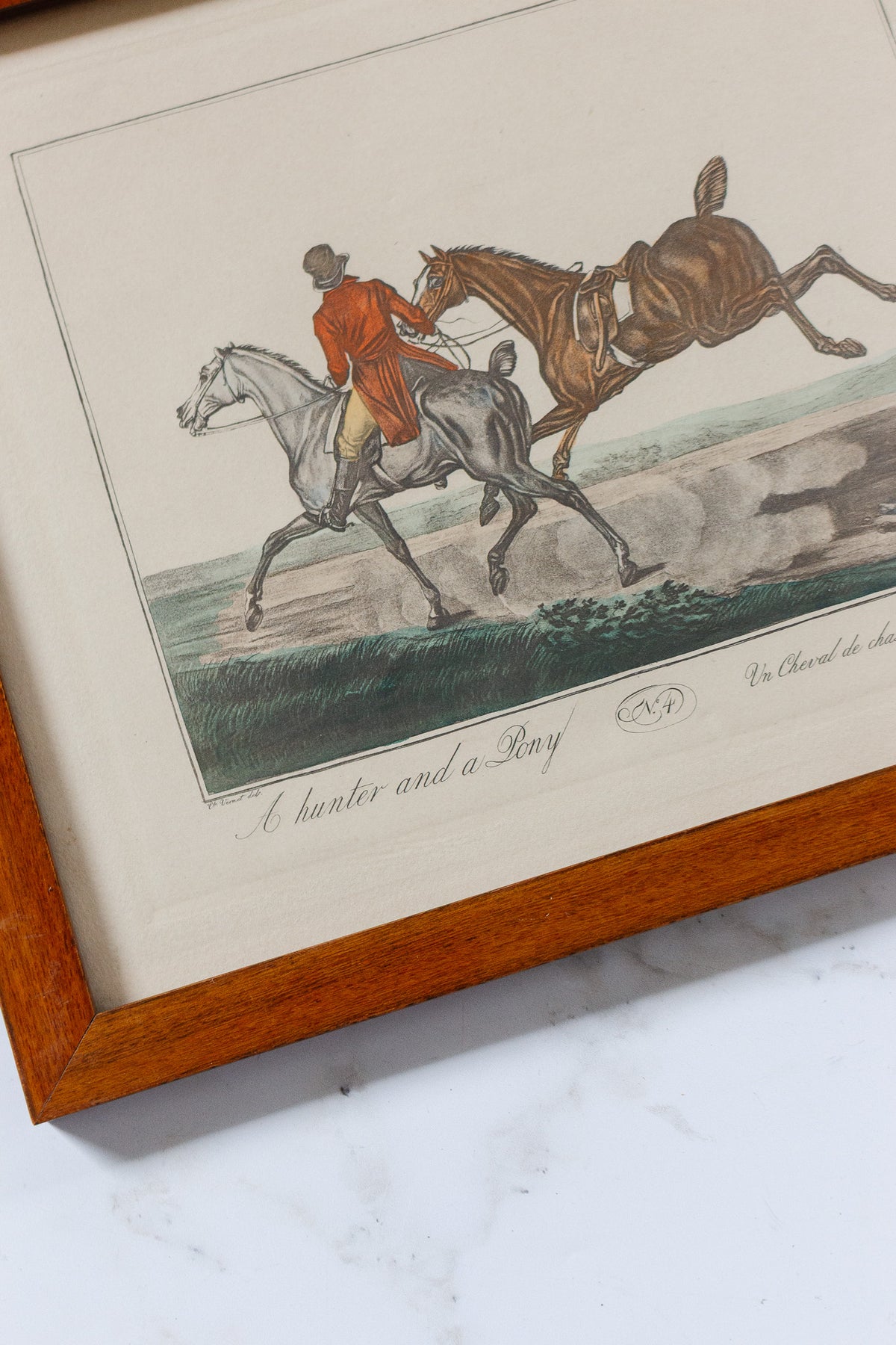 These 19th-century hand coloured engravings were produced in Paris by renowned French artists Carle Vernet who is celebrated for his vivid depictions of military scenes and historical subjects. The equestrian themed engravings are among his most desirable works.