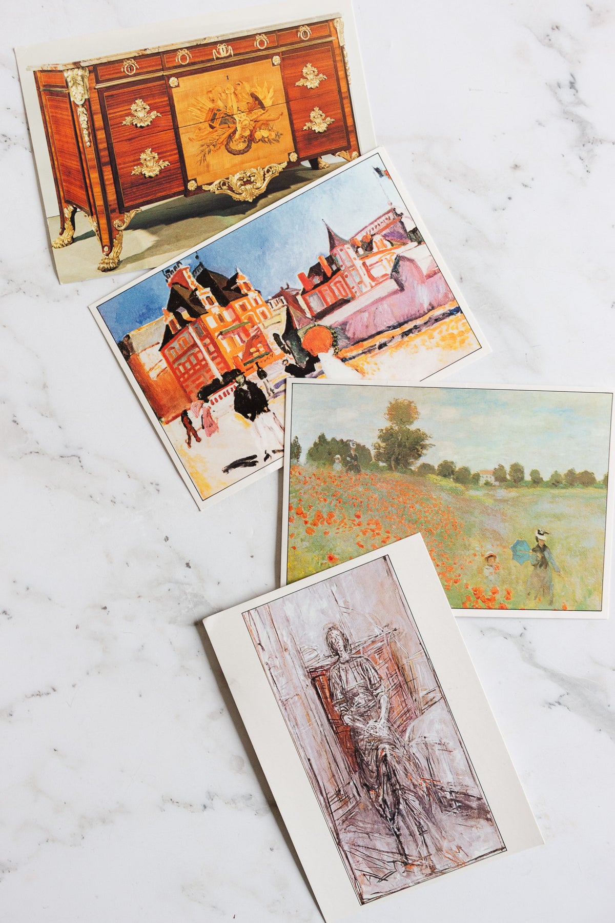 A sweet set of 4 vintage french postcards sourced from a vintage shop in Paris. These are perfect for a flat lay or vision board!