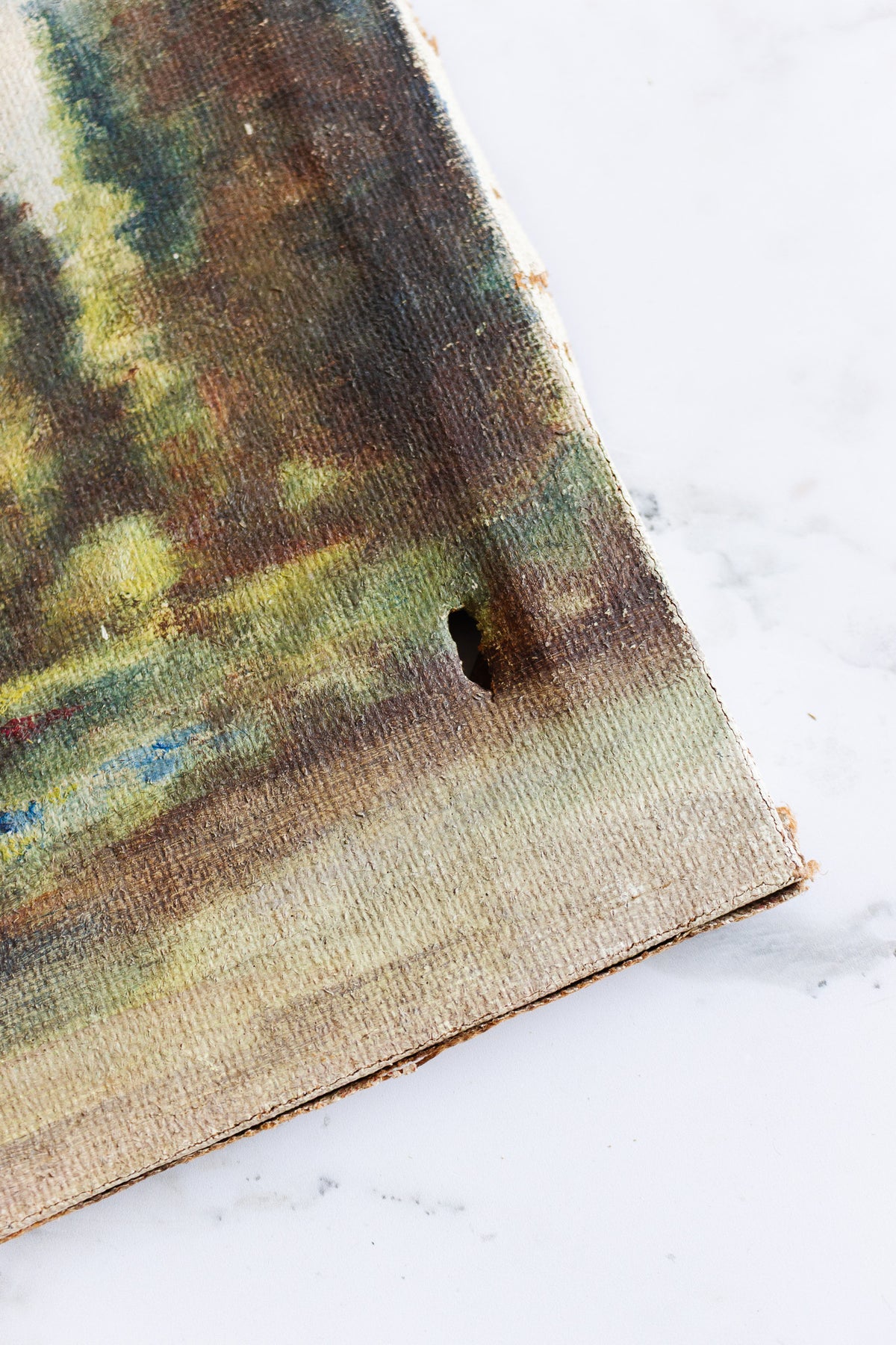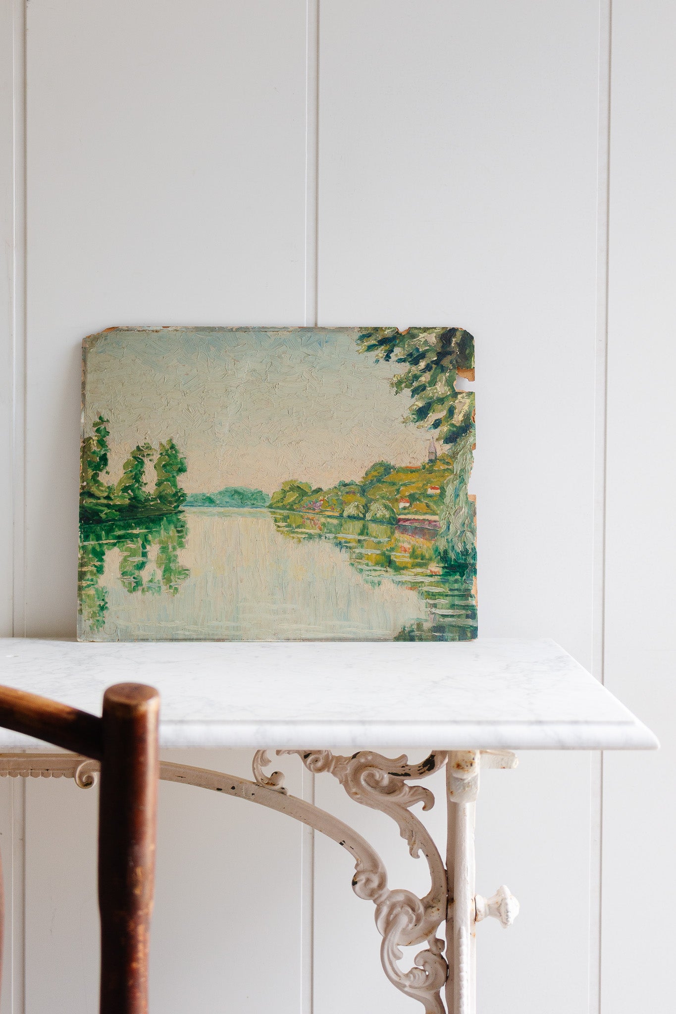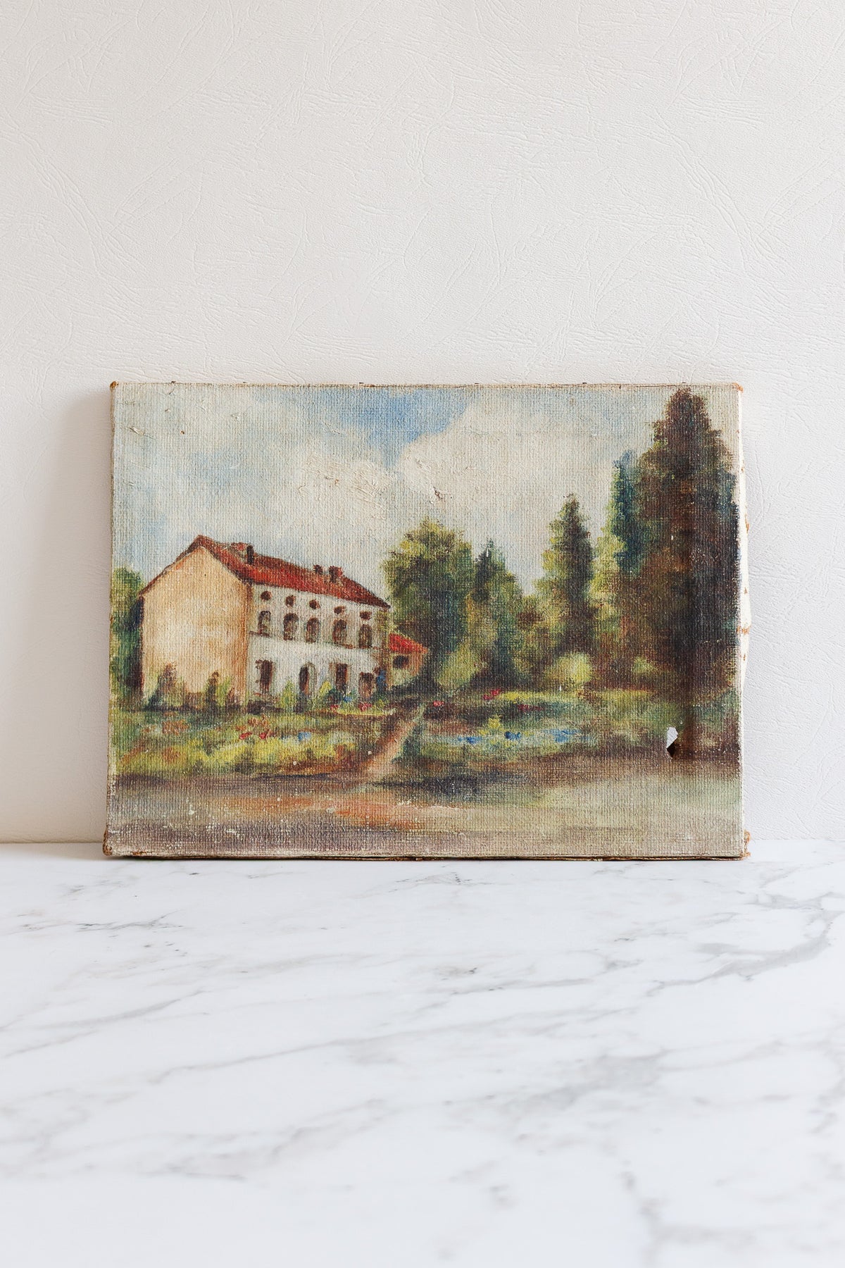 Antique french oil on canvas depicting a home in the countryside. Sourced from a brocante in Marseille.
