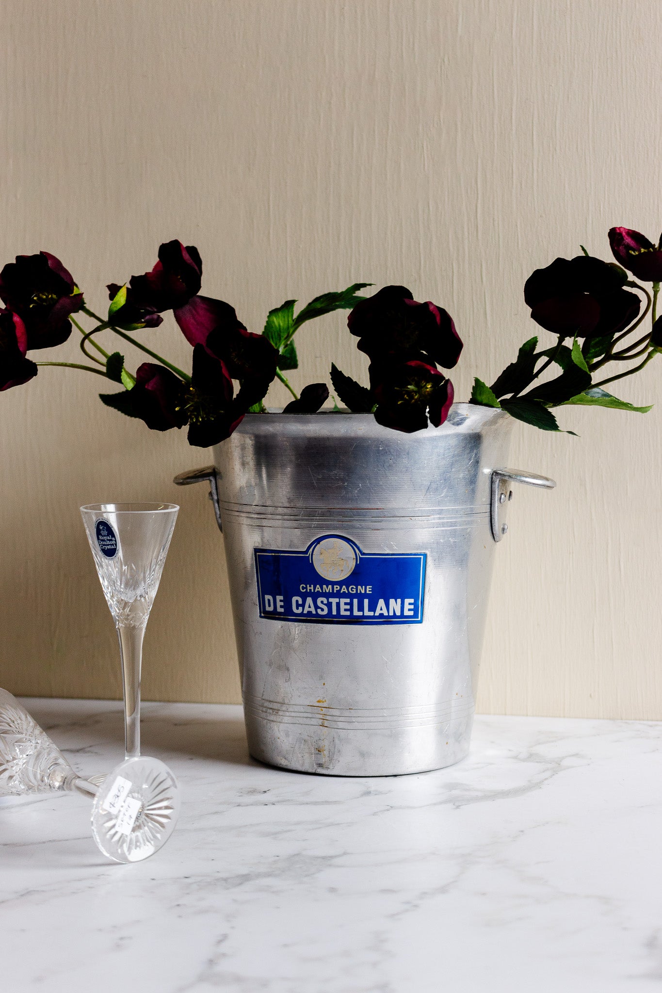 This vintage French aluminum champagne bucket is marked with the vintner's name Champagne Pol Roger. We think these buckets are perfect not only for chilling drinks but also for a bouquet of fresh flowers. They also make the perfect addition to your holiday tablescape!