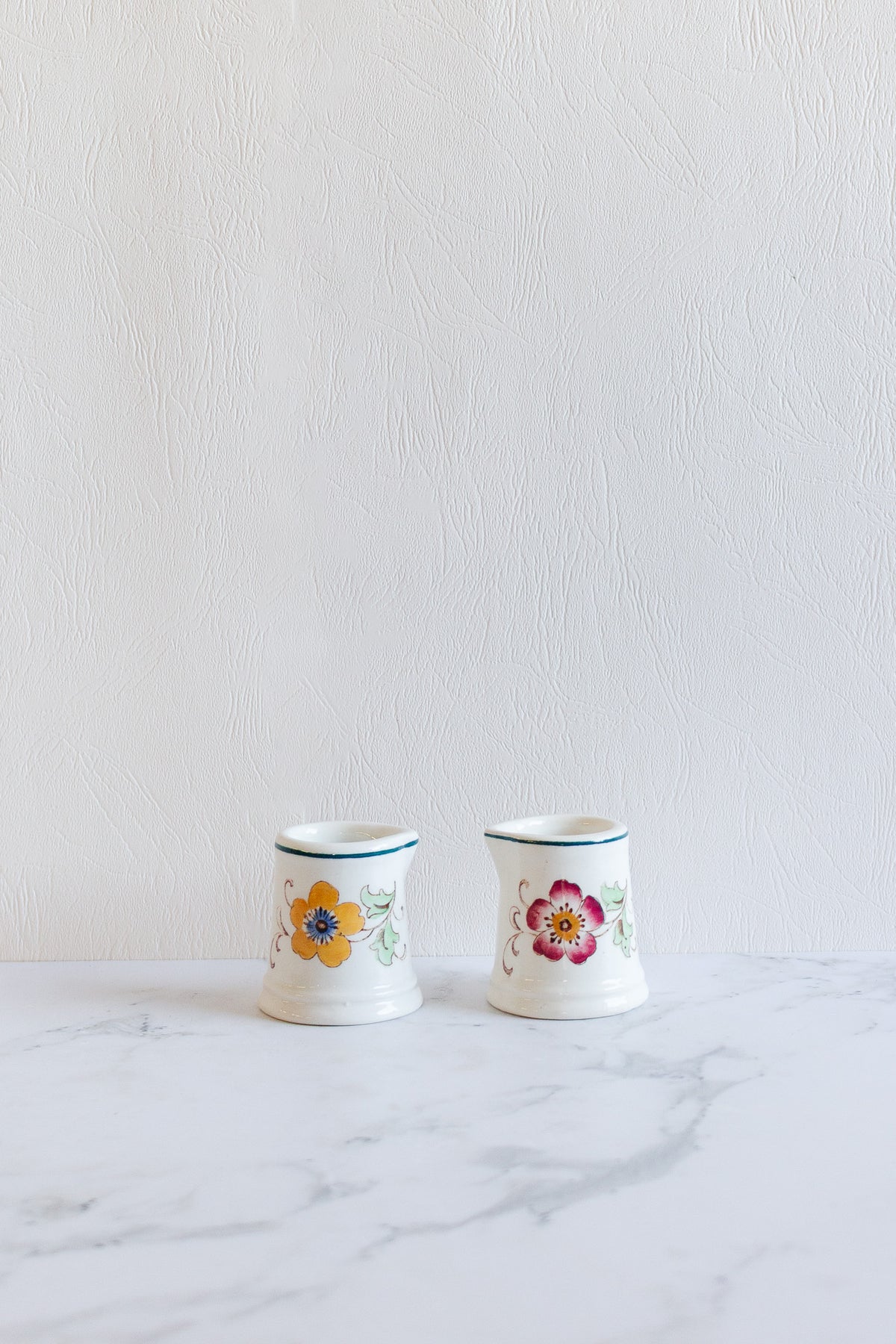 This charming pair of creamers from Wood & Sons Burslem, in the delicate “Florida” pattern, showcases classic English pottery design with timeless appeal. Perfect for serving cream or milk at tea time, or displayed as part of a vintage tableware collection, these creamers bring understated elegance to everyday moments.