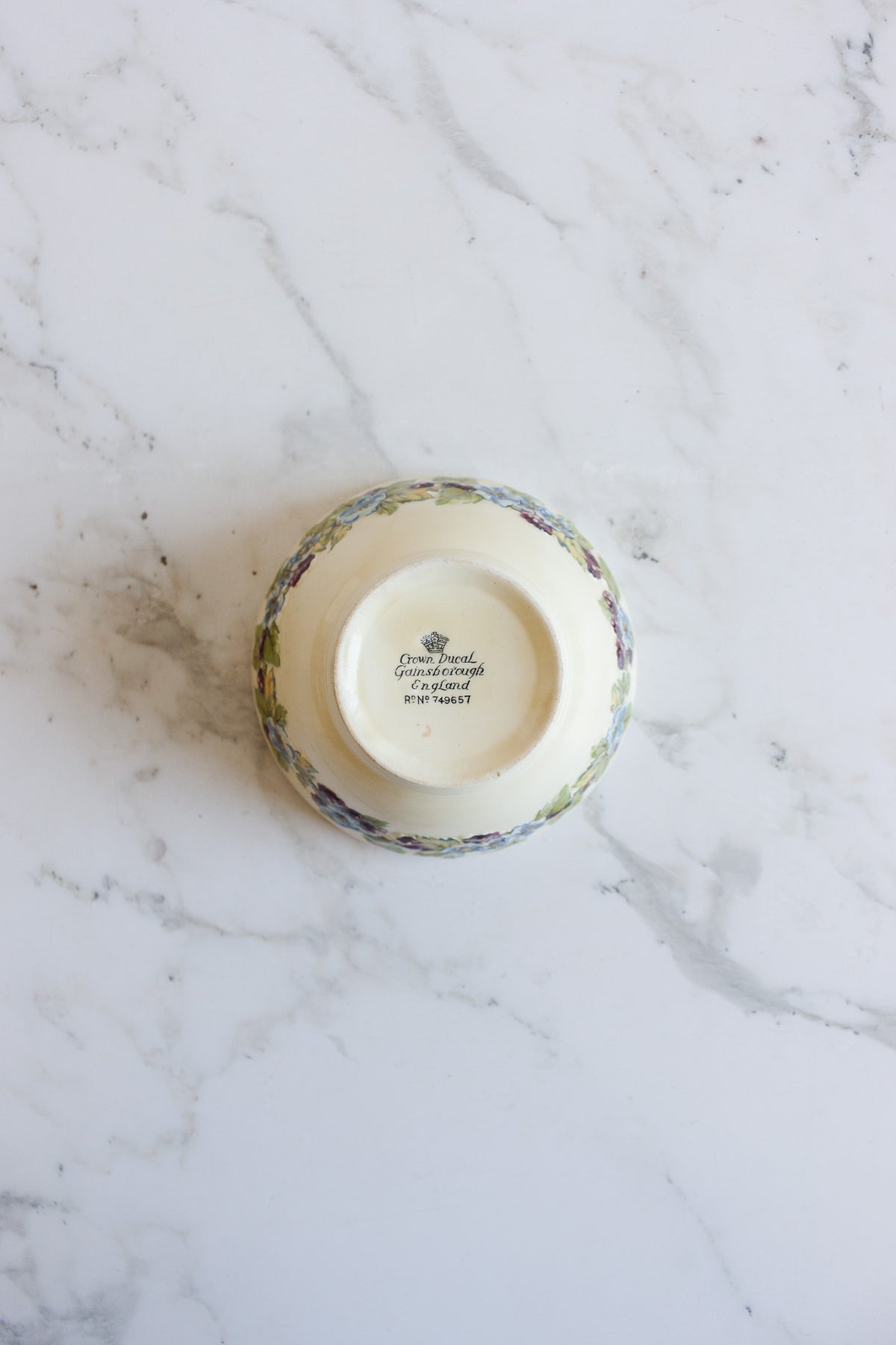 Vintage English serving platter and bowl in the Crown Ducal Gainsborough pattern. Produced by A.G. Richardson & Co. Ltd. beginning around 1929, this discontinued design features raised detailing with soft blue flowers, green leaves, and maroon berries. The platter’s generous size pairs beautifully with the coordinating bowl, which is perfectly suited for serving nuts, sweets, or olives. Together, they capture the grace and charm of early 20th-century English tableware—pieces meant for both everyday use and elegant display.