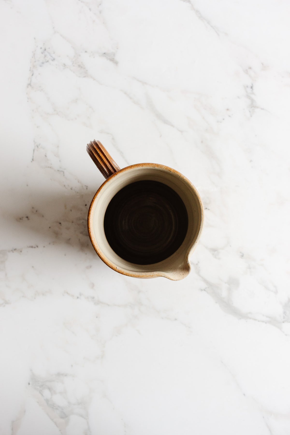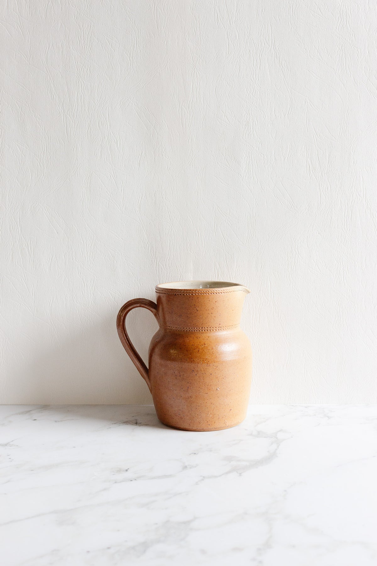 We love these gorgeous stoneware pitchers that are beautiful on their own on a shelf, or repurposed as a flower vase. This piece is marked as handmade by "Grès de Bonny" and was sourced from a brocante in Marseille.