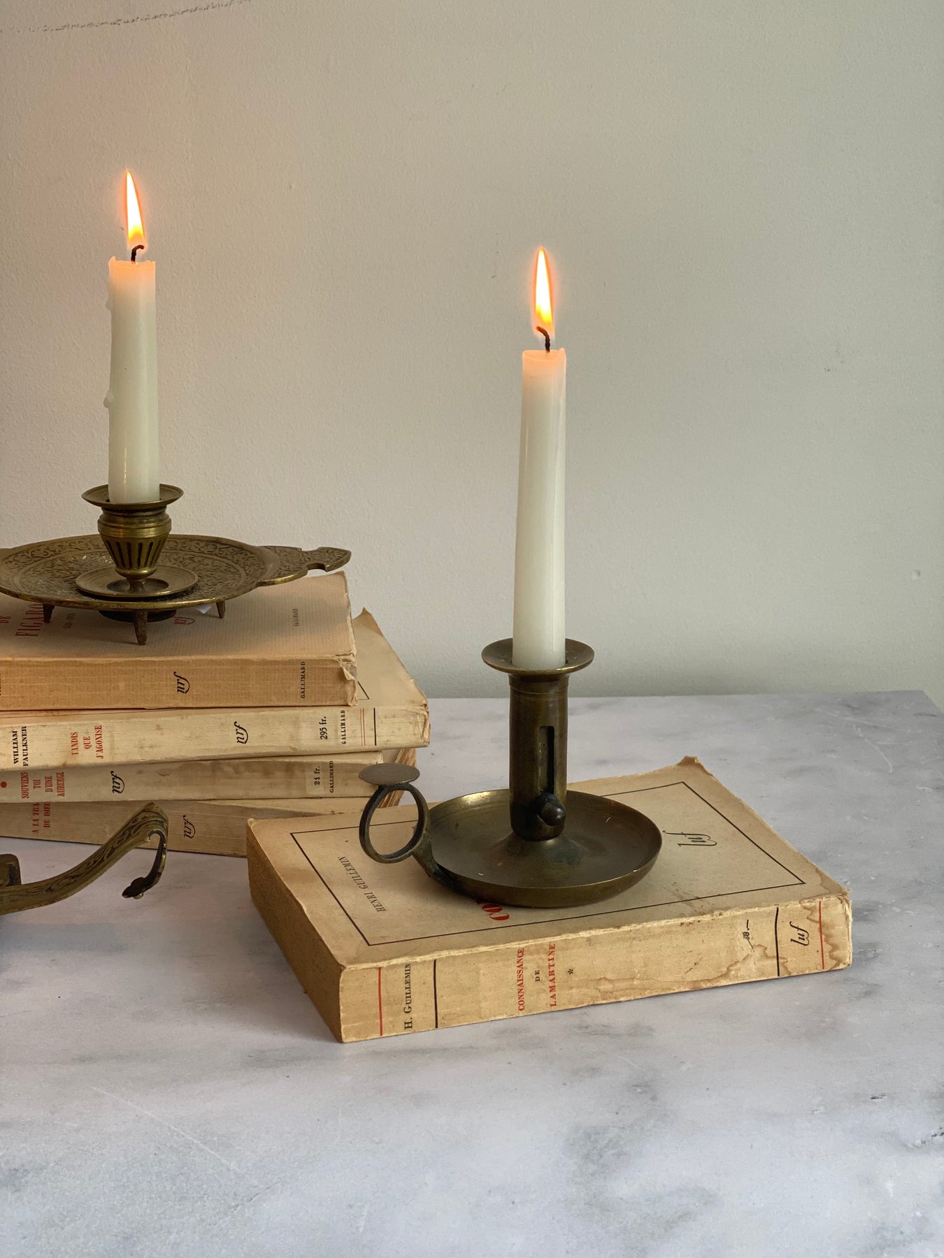 The warmth of natural light and the patina and time worn beauty of French brass makes for the perfect cozy moment. We love adding to an eclectic collection with varying styles and heights.