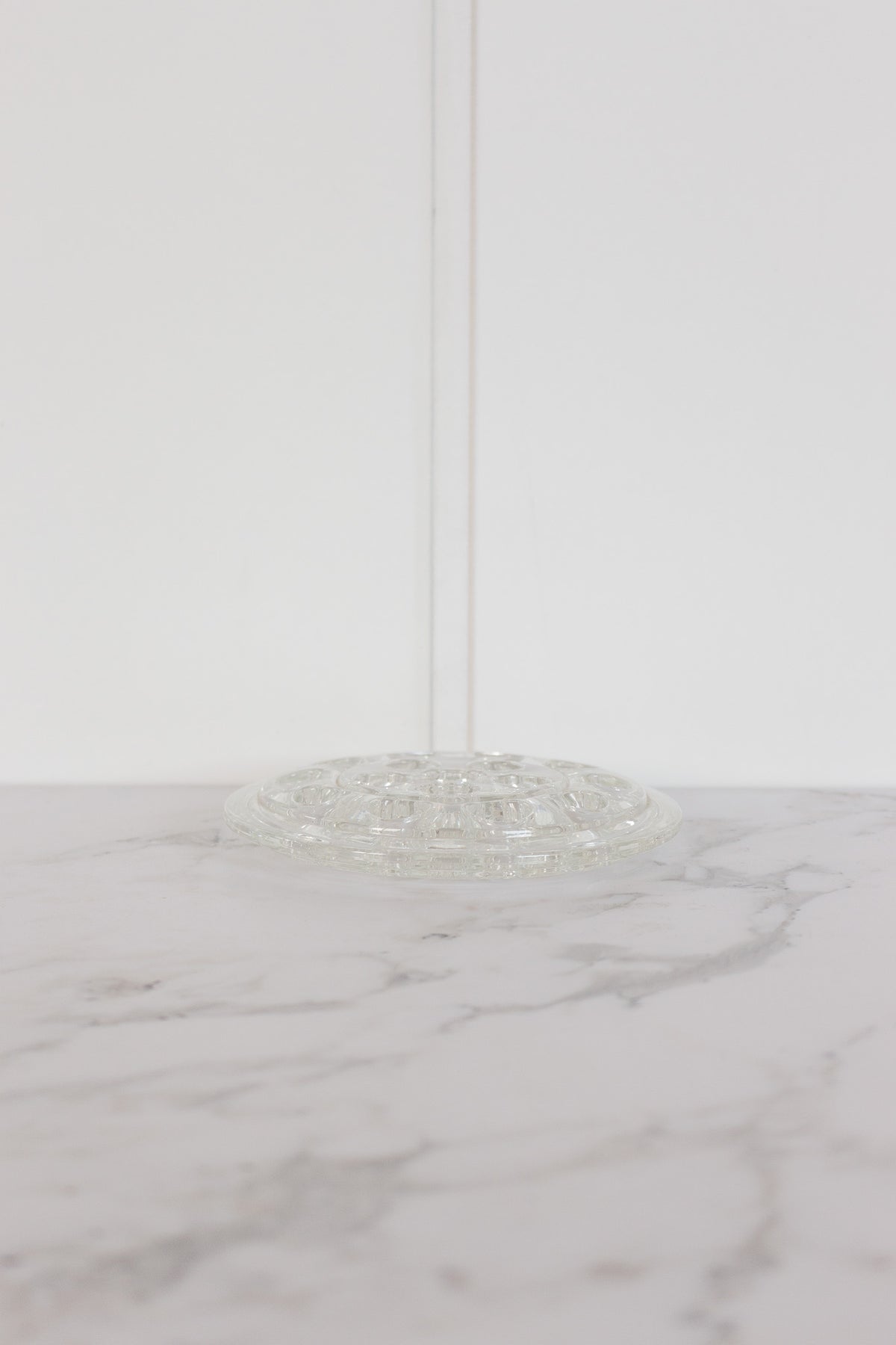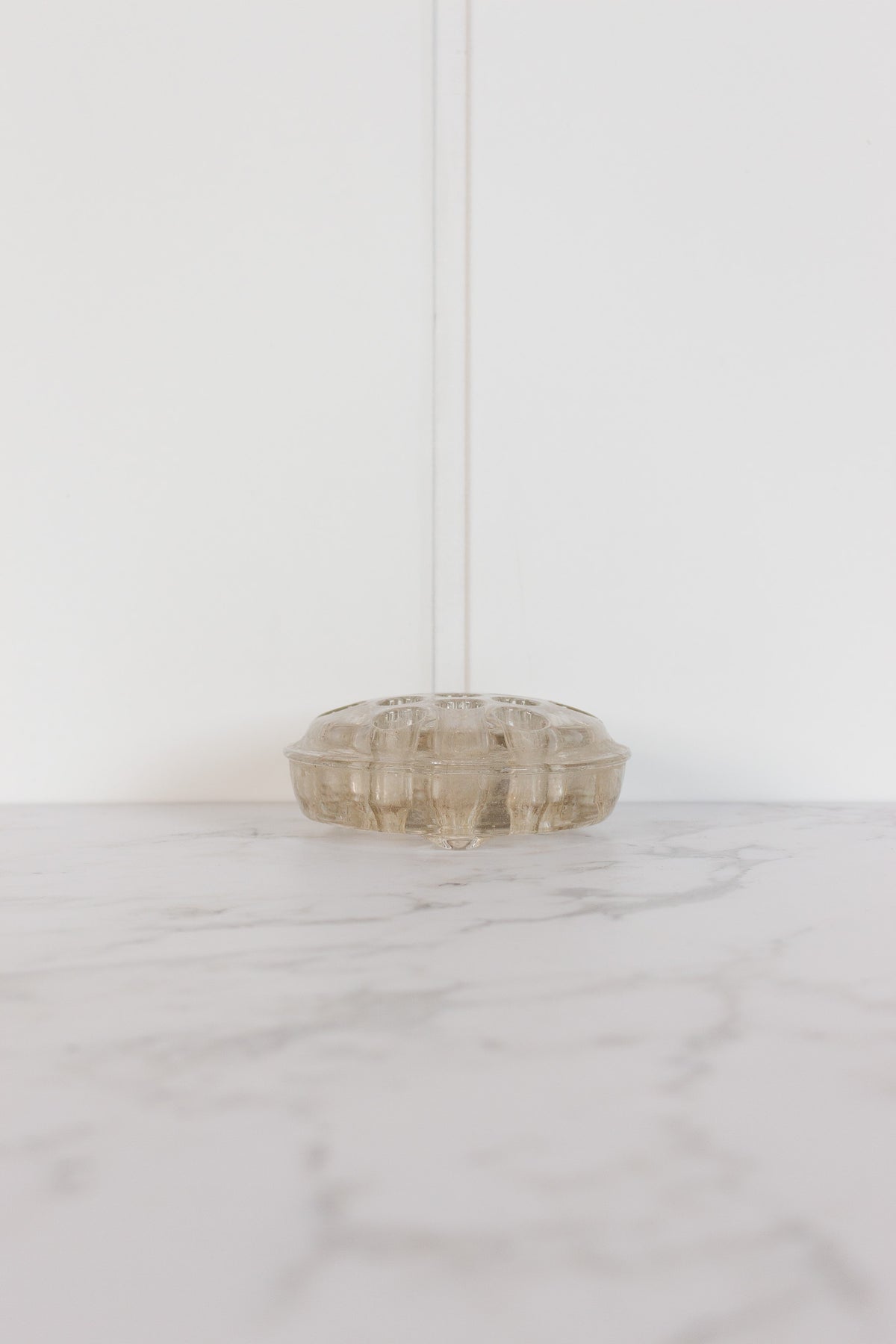 Before floral foam, there were flower frogs. They don't make glass flower frogs anymore so these are true collectibles. These beautifully thick and heavy pieces are used to hold flowers and space them for an arrangement. Use them as is or insert into the neck of a vase.