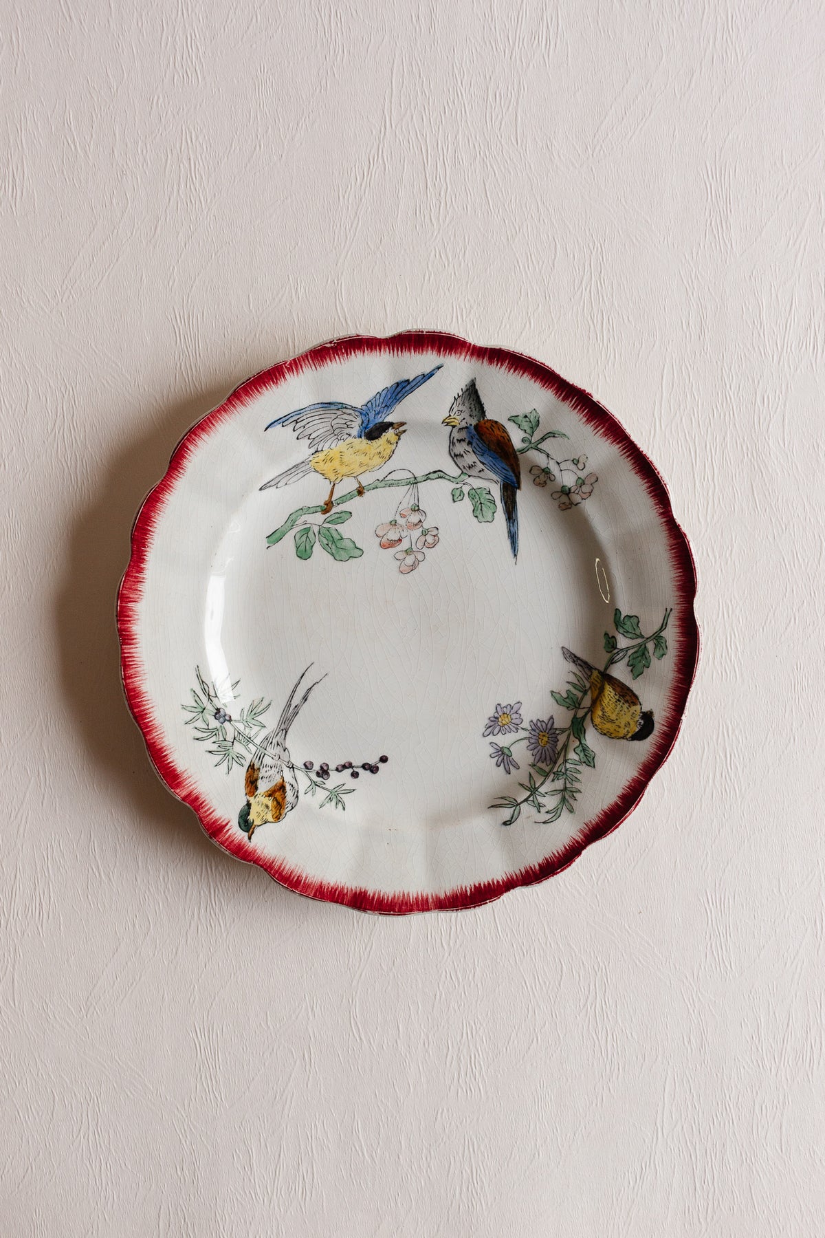 pair of antique french choisy le roi polychrome "oiseaux" plates