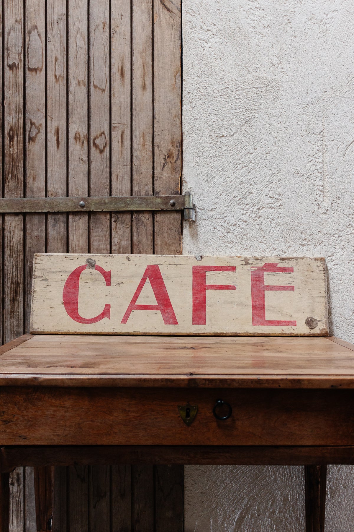 We love antique typography and this original hand painted cafe sign is a beautiful example. Once hung at a cafe in the South of France, it is now a conversation starter and decorative piece to adorn your walls.