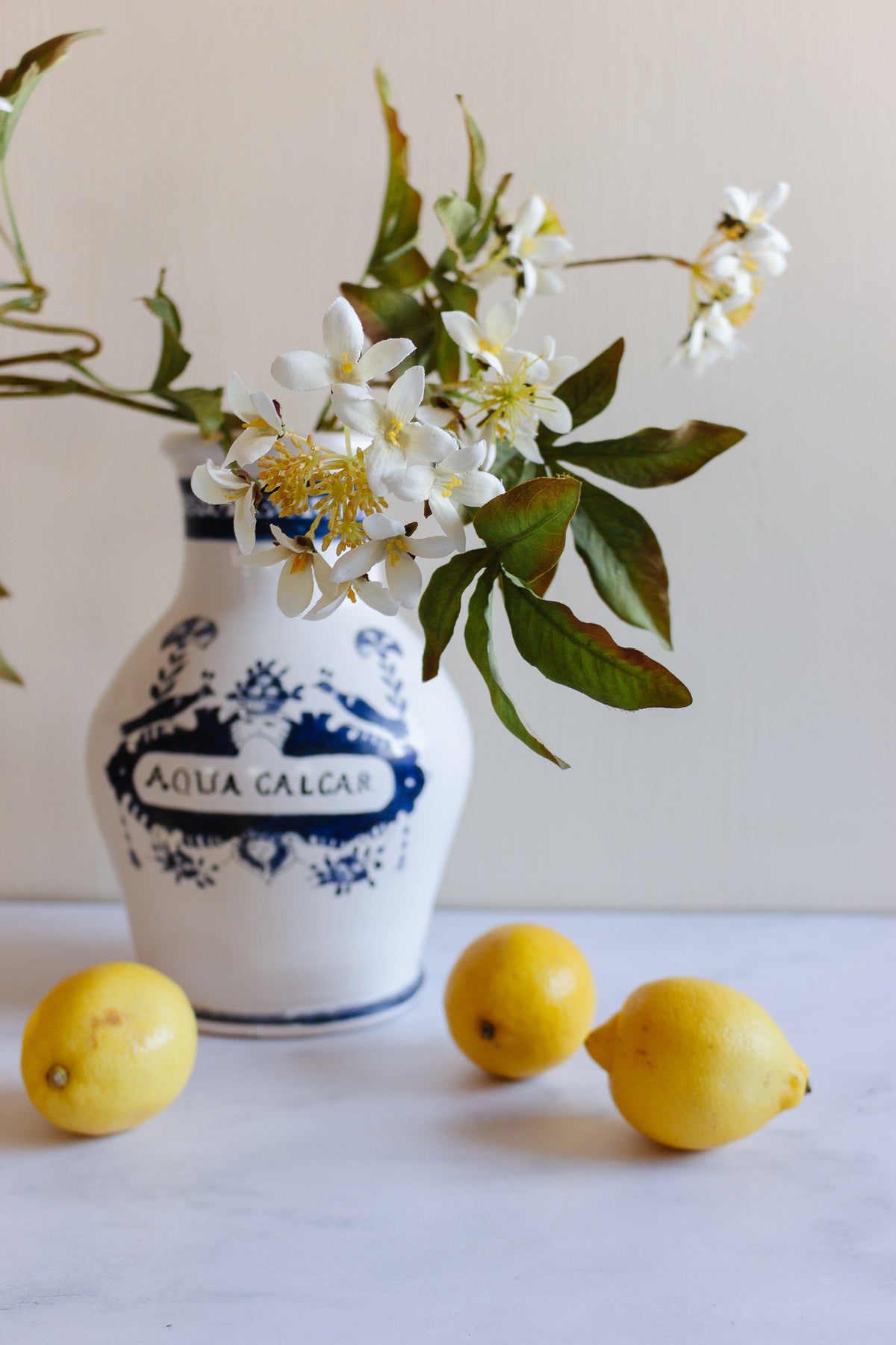 We are lovers of everything blue and white, so when we found this pretty pot at a brocante in Normandy we snapped it up. Hand painted and made to resemble the 19th century apothecary jar style, this gorgeous pot with impressive size is the perfect addition to a spring or summer table.