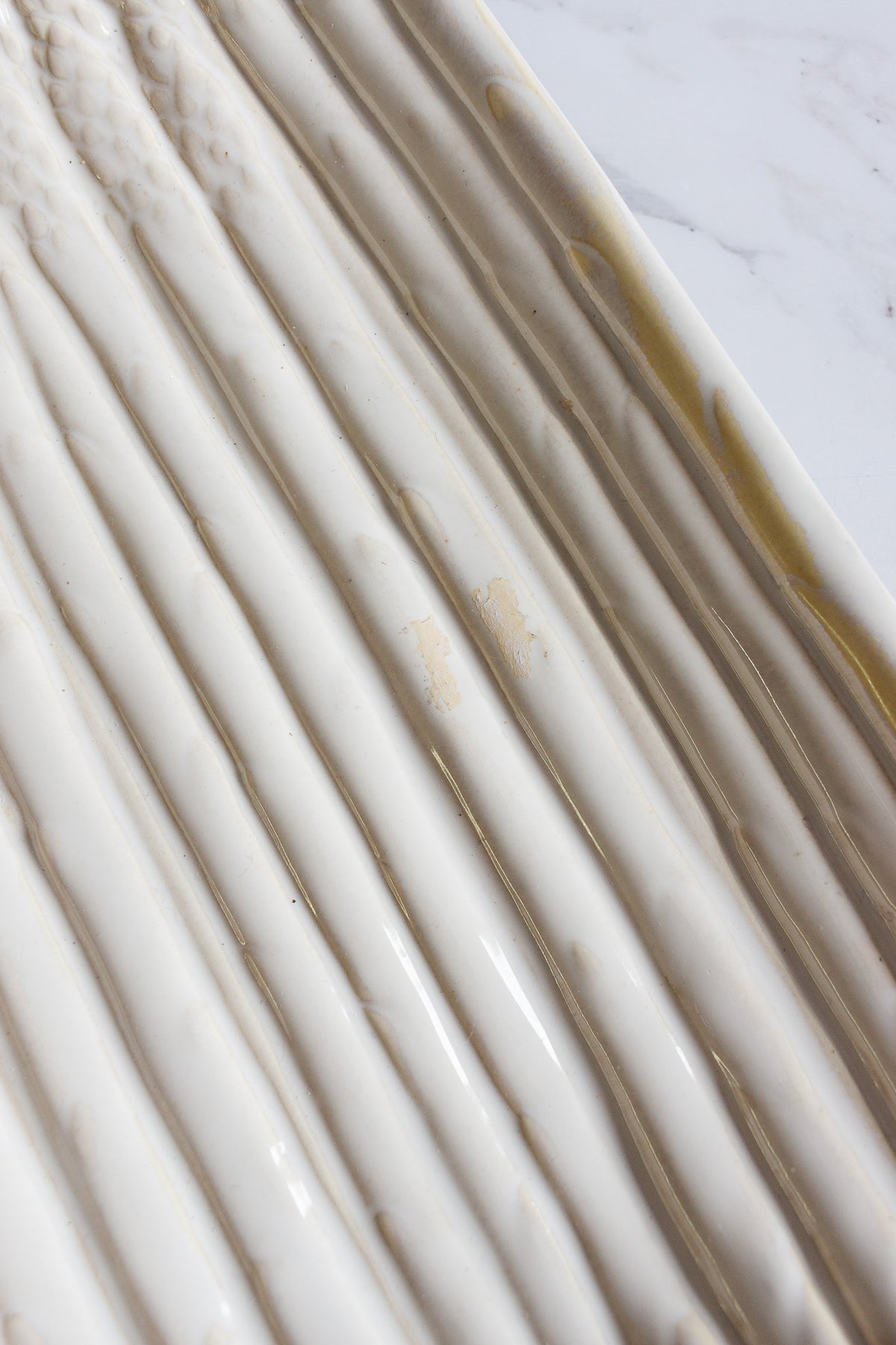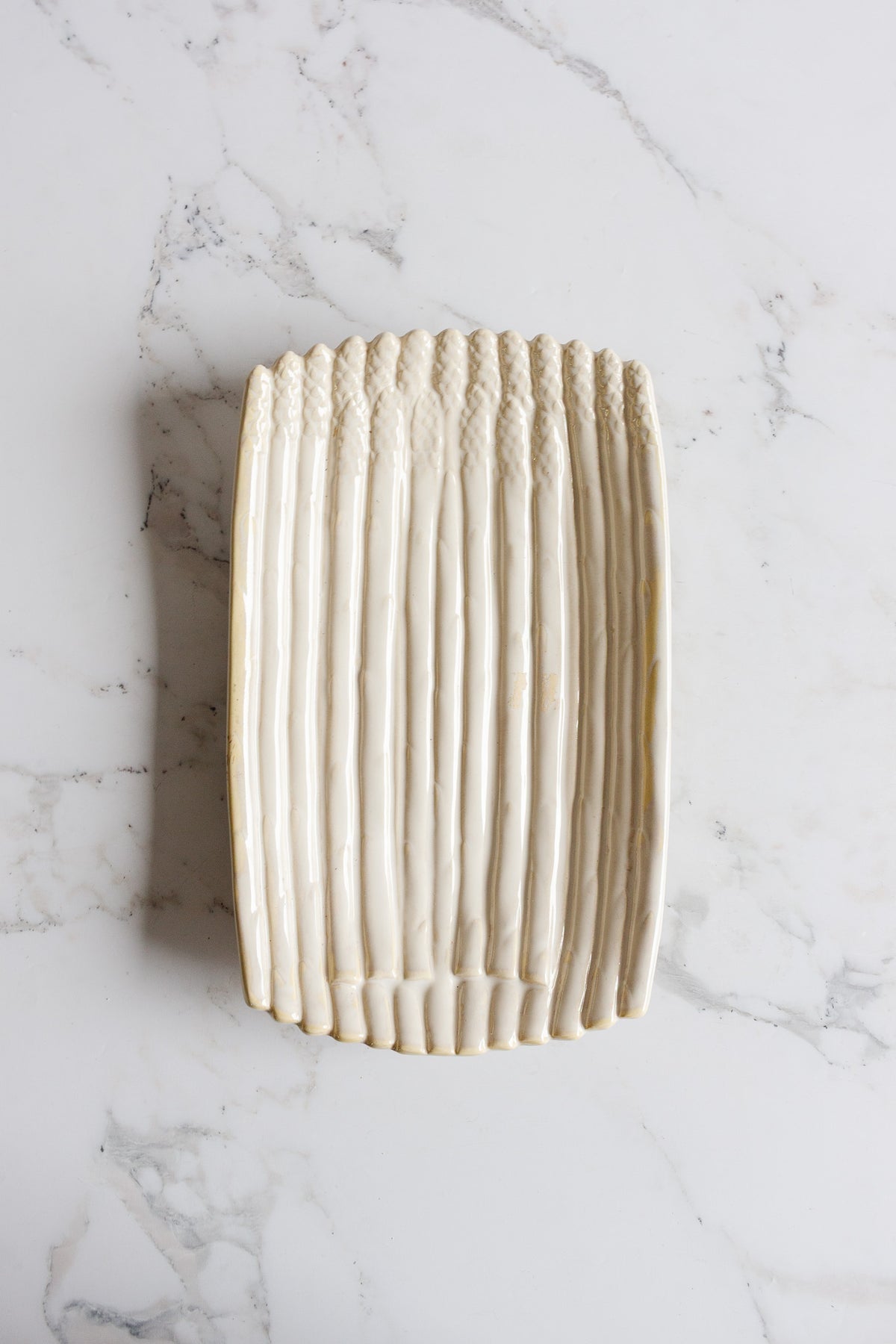 Once intended for serving tender spears of asparagus, this French plate has a sense of versatility baked right in. Its graceful shape and painterly detail make it just as suited to a spread of crisp crudités, a parade of petits fours, or even as a resting place for favorite pieces of jewelry.