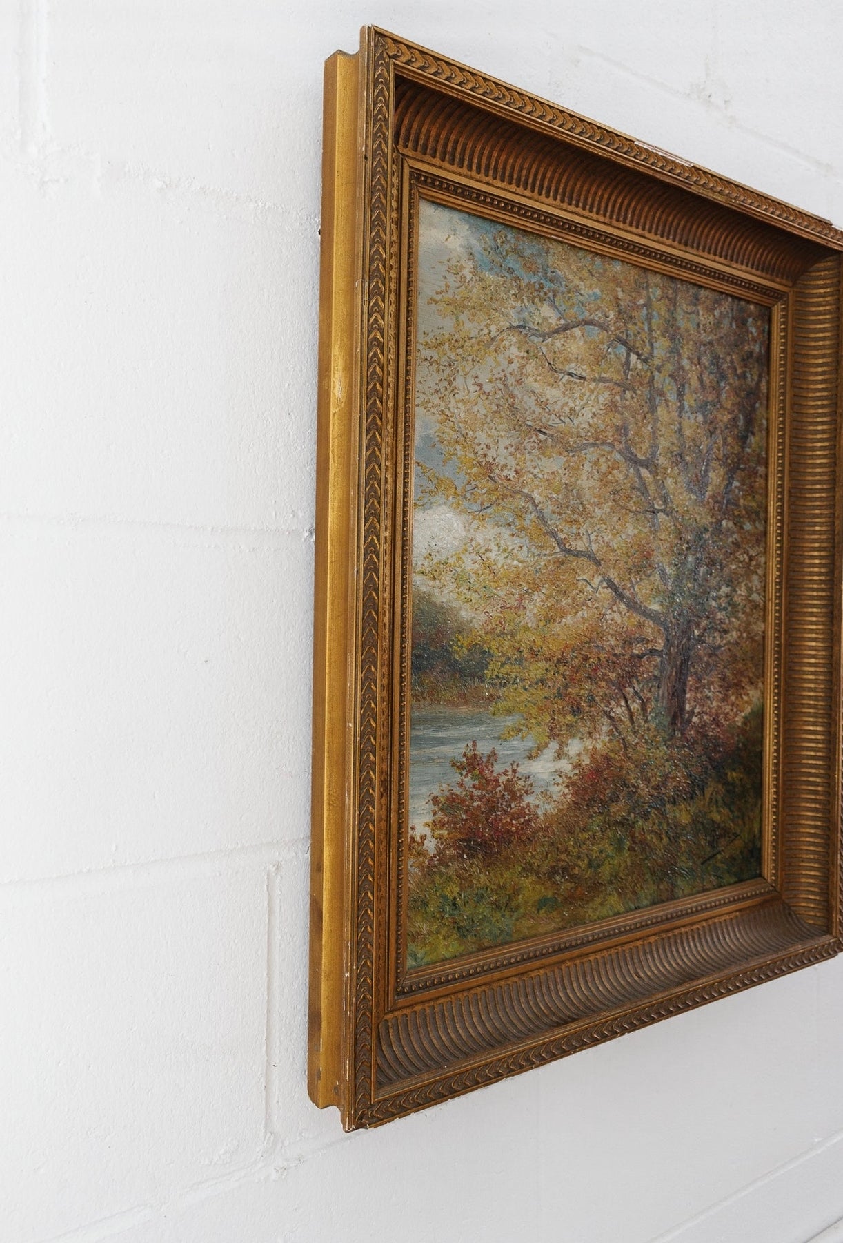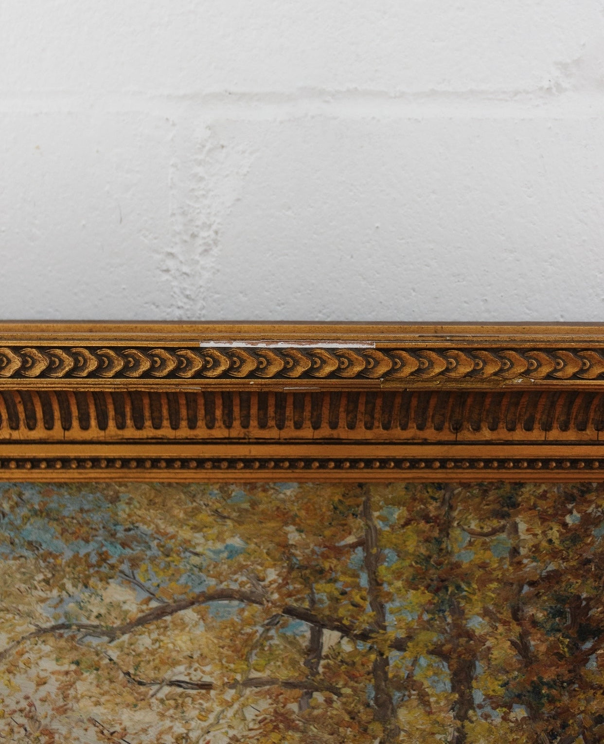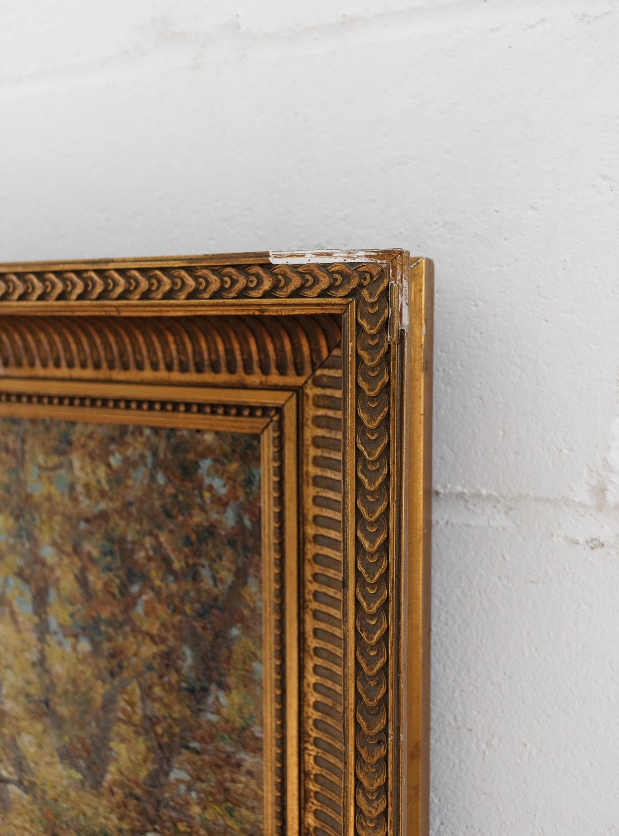 A stunning antique French oil on canvas, housed in original, softly worn gilt plaster frame.