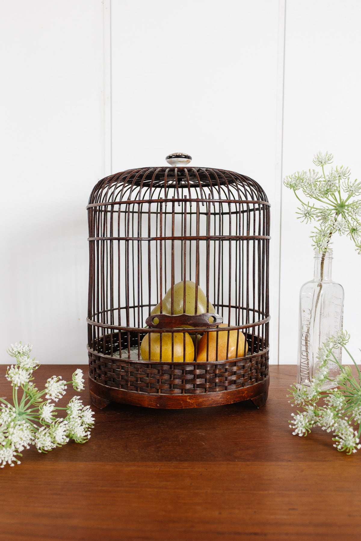 Antique French Chinoiserie birdcage, an exquisite blend of elegance and artistry. Featuring a delicately hand-painted porcelain top and intricate carved wood details, this cage was designed without a base, making it a striking decorative piece. With Chinoiserie at the forefront of design trends, this rare find captures the allure of 18th-century European fascination with the East, bringing timeless sophistication and exotic charm to any interior.