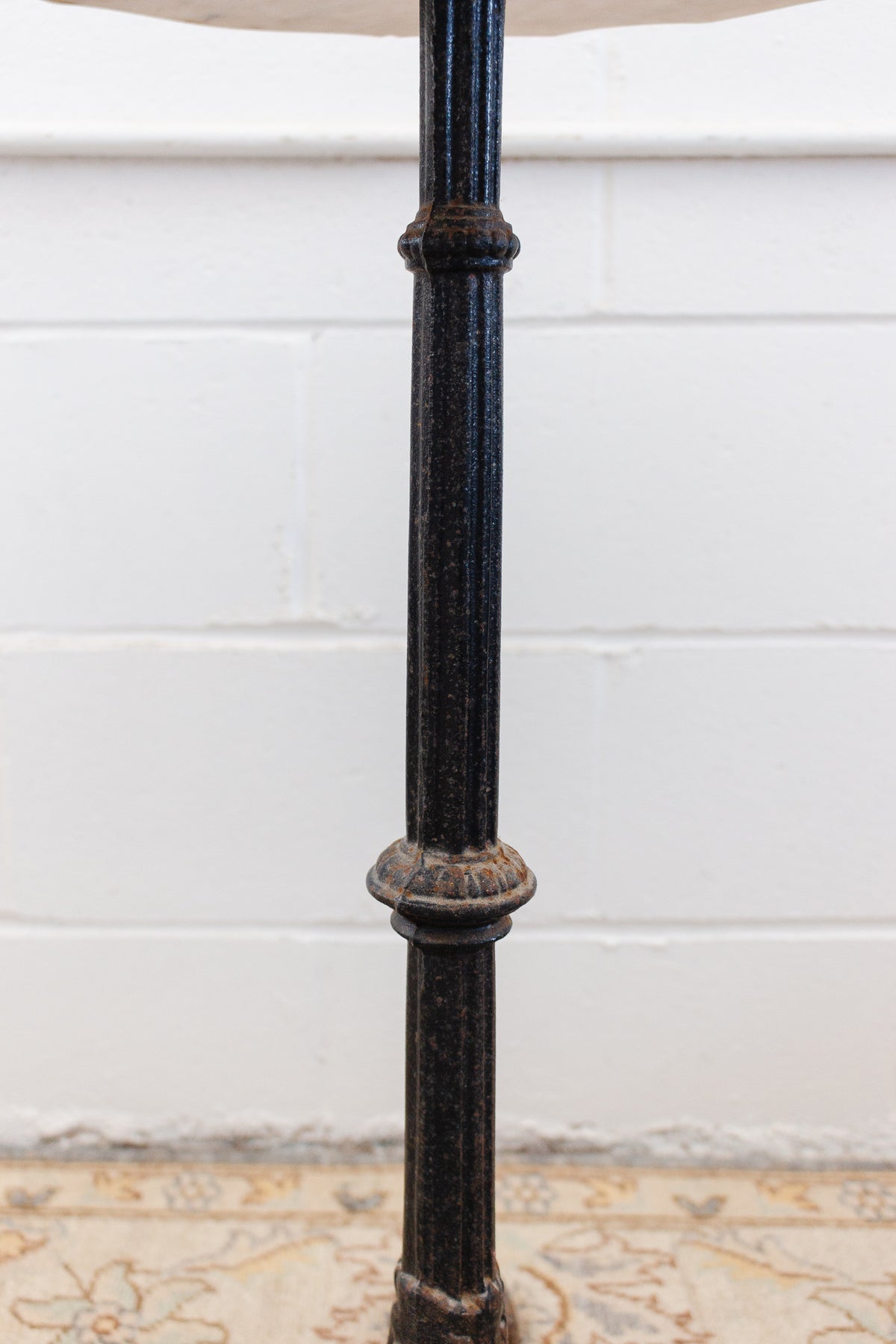 Please note that the marble top and cast iron base are not fastened to each other, and that there are prescience of two small chips to the edge of the marble. Pricing reflects.