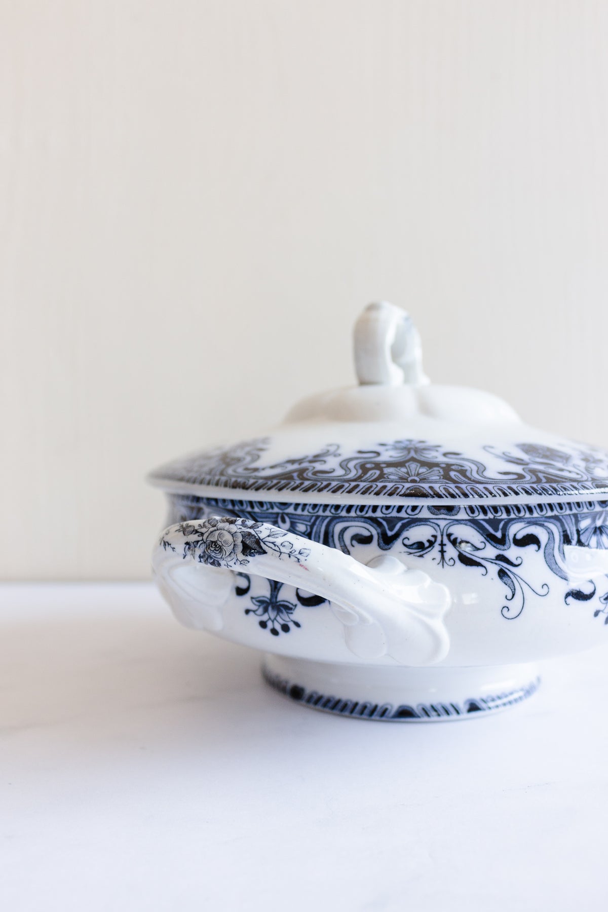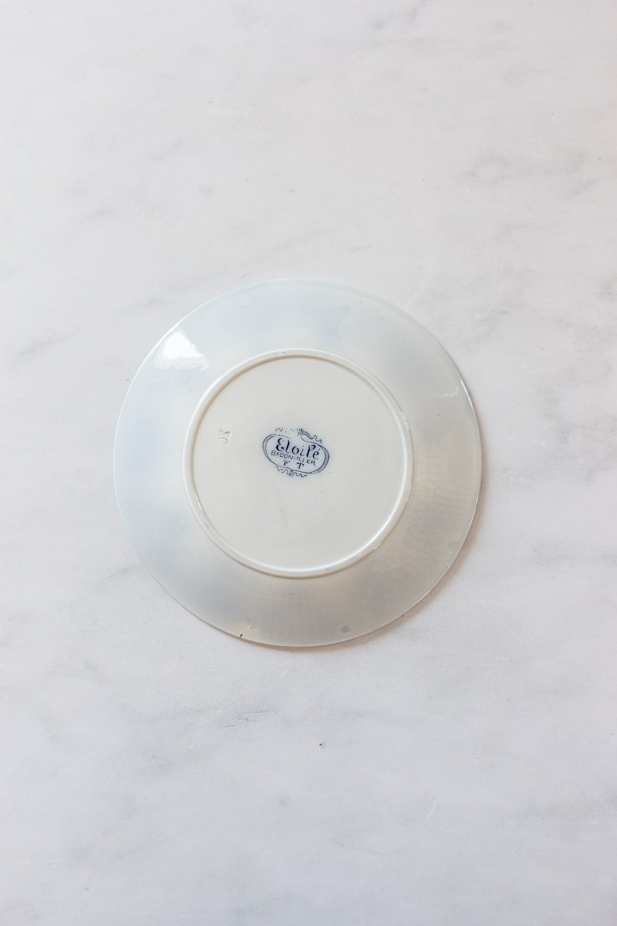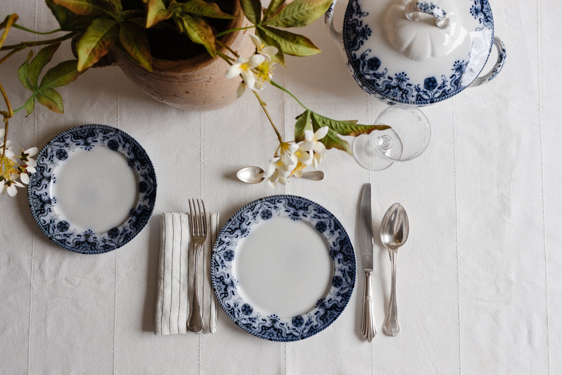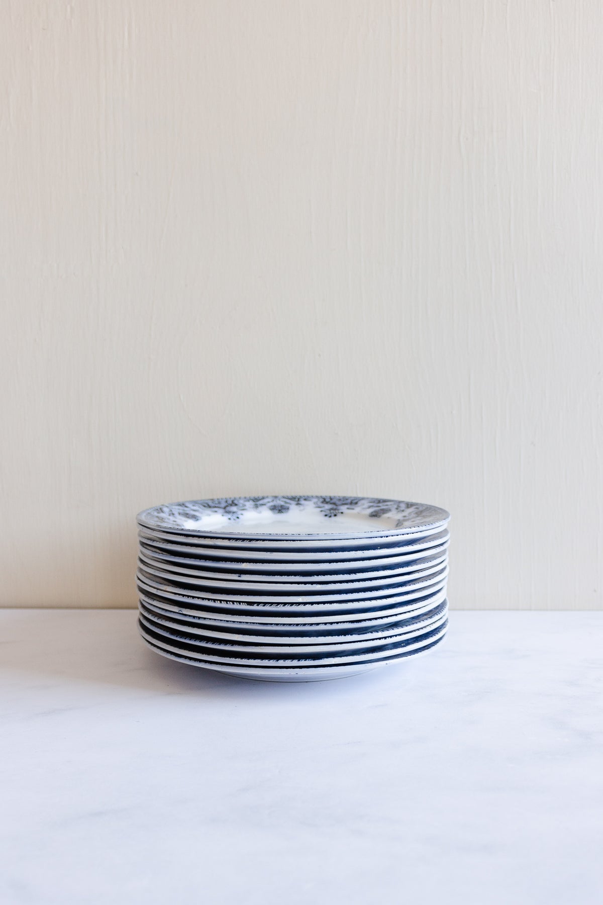 An exquisite set of 42 antique french transferware by Badonviller; stamped on the bottom by the maker. This set once lived in a home in Normandy.  Use this as an every day set - forget about storing china for a special occasion.  See below for a breakdown of included pieces. Note there are some.minor chips as pictured to a few items. Priced accordingly.