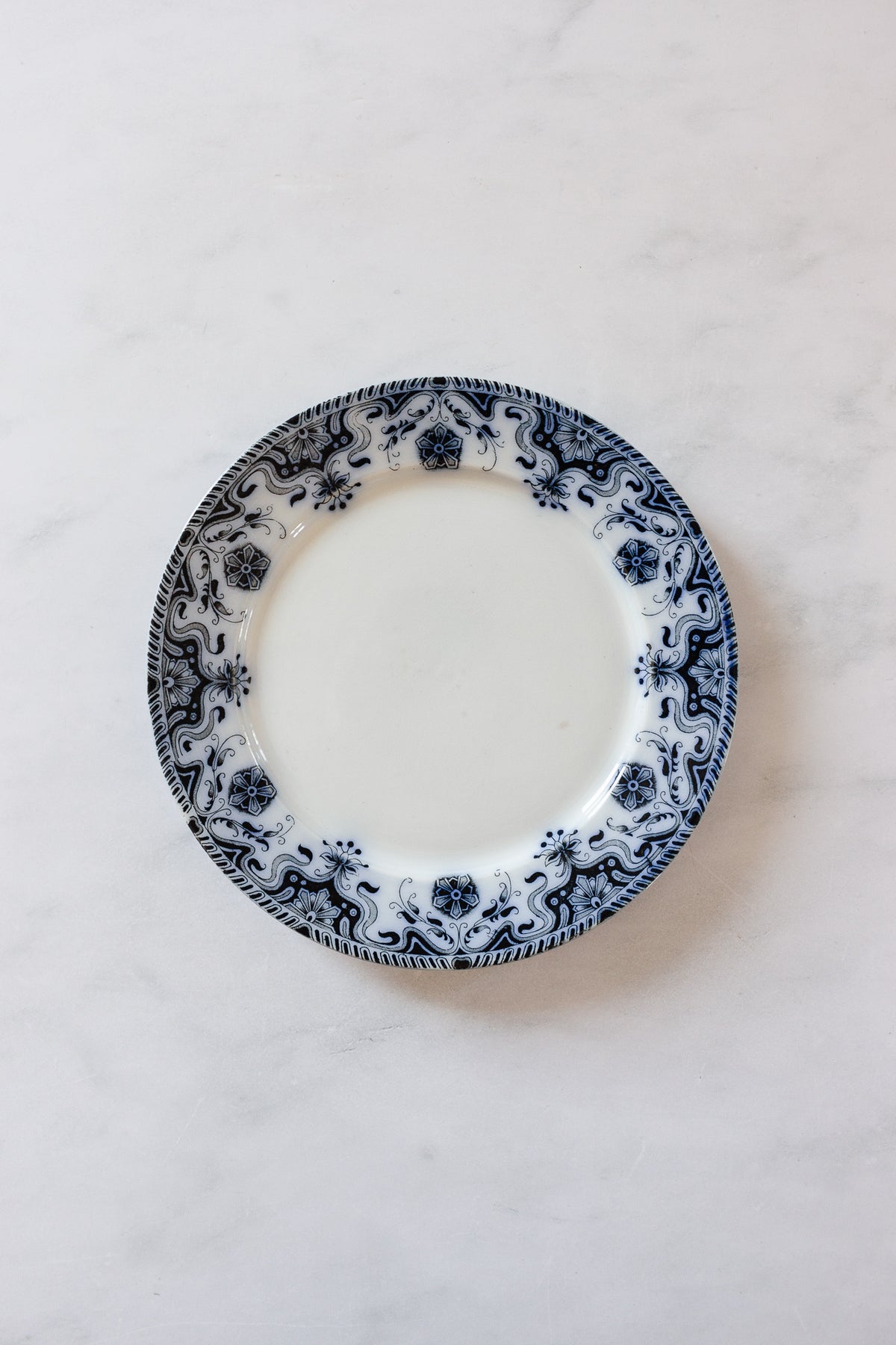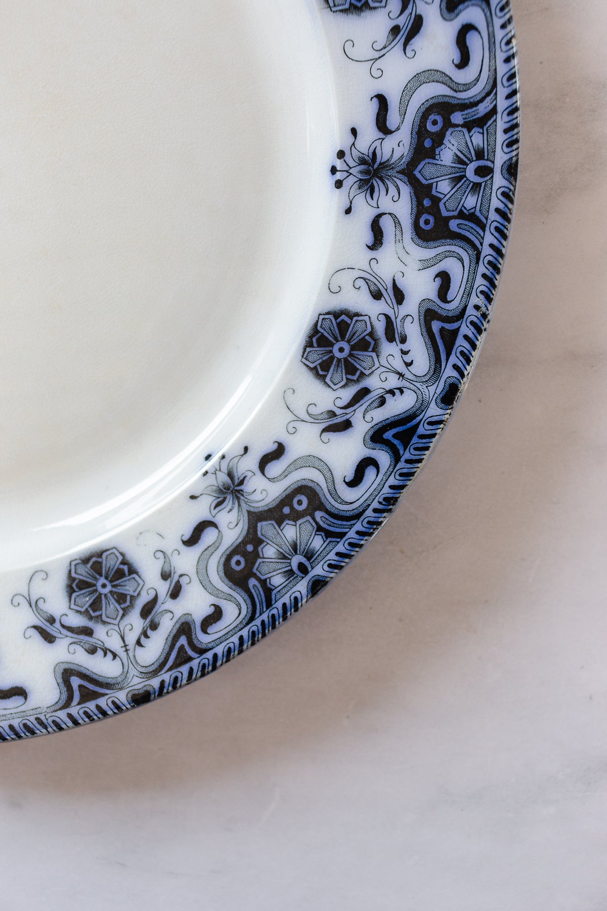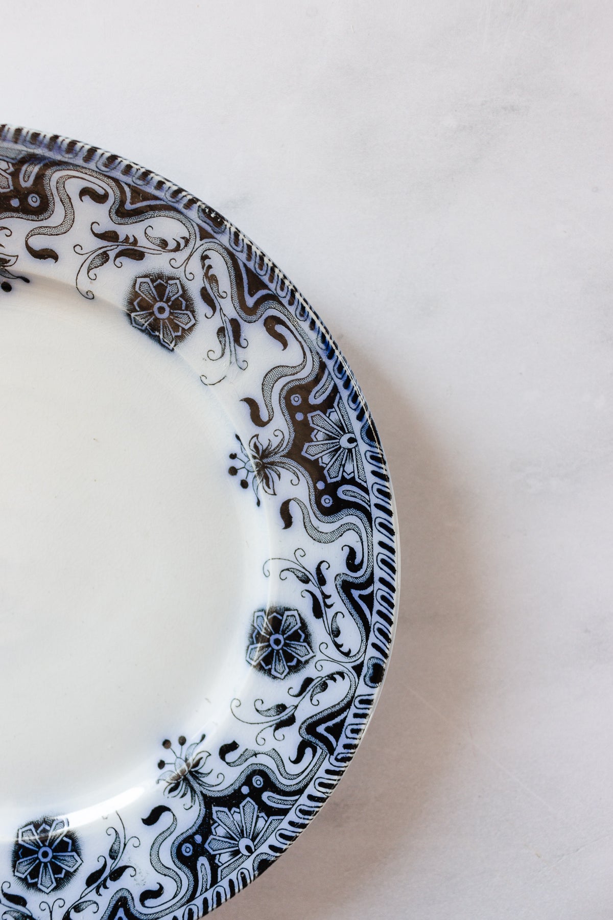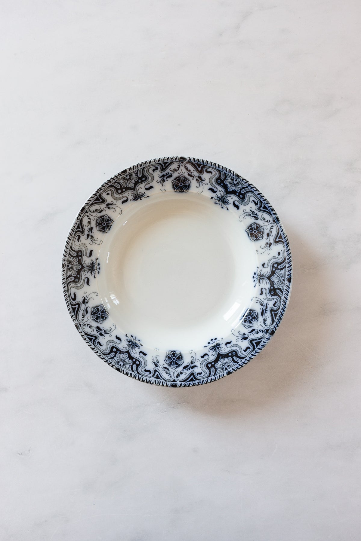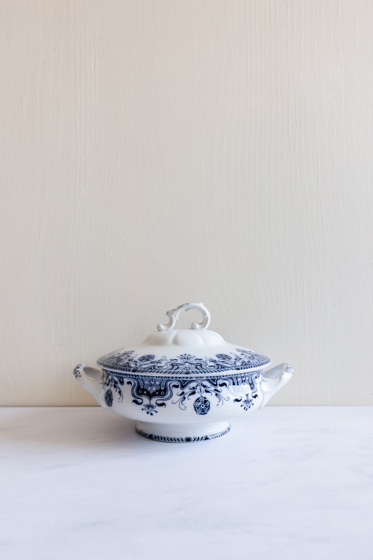 An exquisite set of 42 antique french transferware by Badonviller; stamped on the bottom by the maker. This set once lived in a home in Normandy.  Use this as an every day set - forget about storing china for a special occasion.  See below for a breakdown of included pieces. Note there are some.minor chips as pictured to a few items. Priced accordingly.