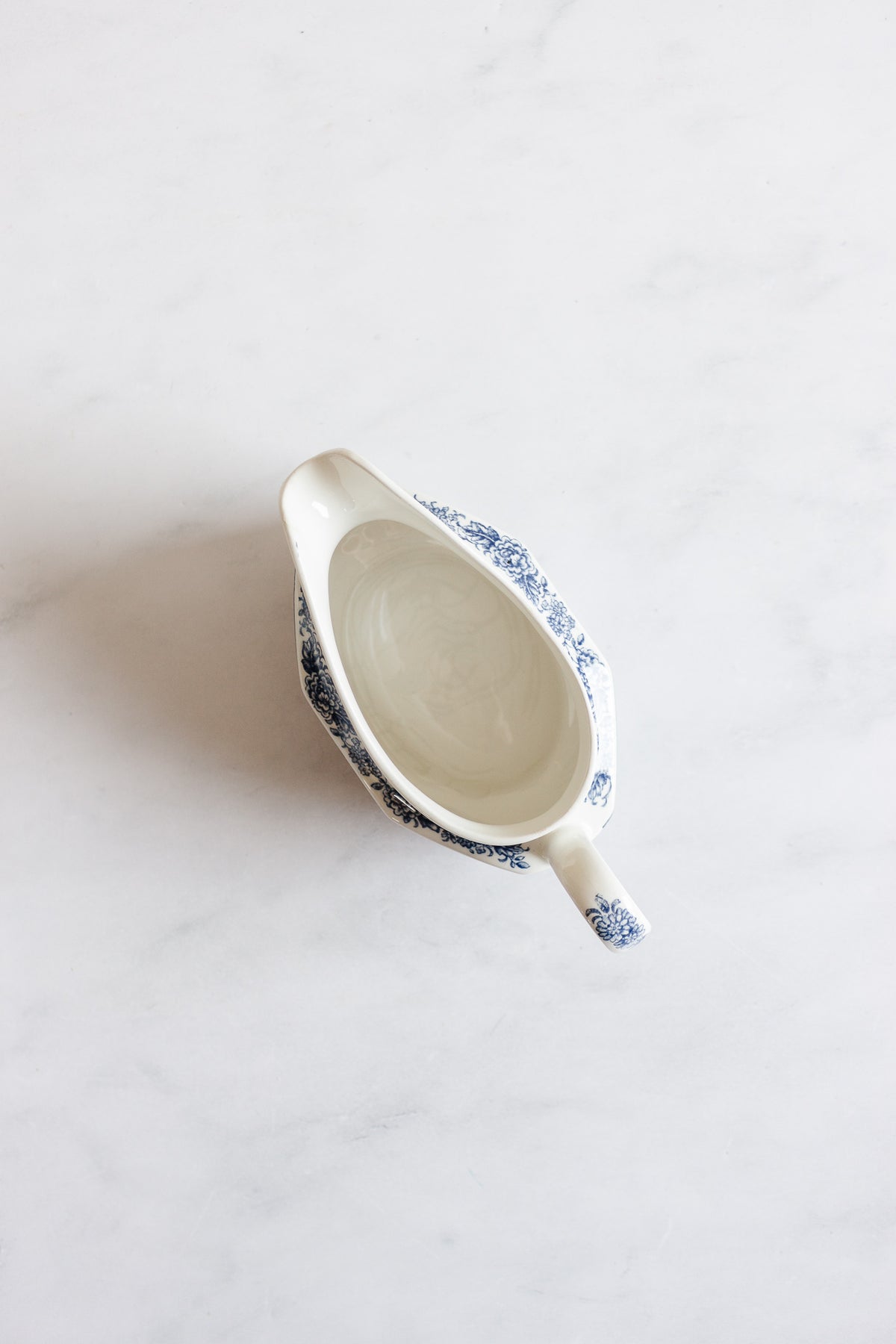 vintage English Ridgeway ironstone transfer ware blue and white gravy boat