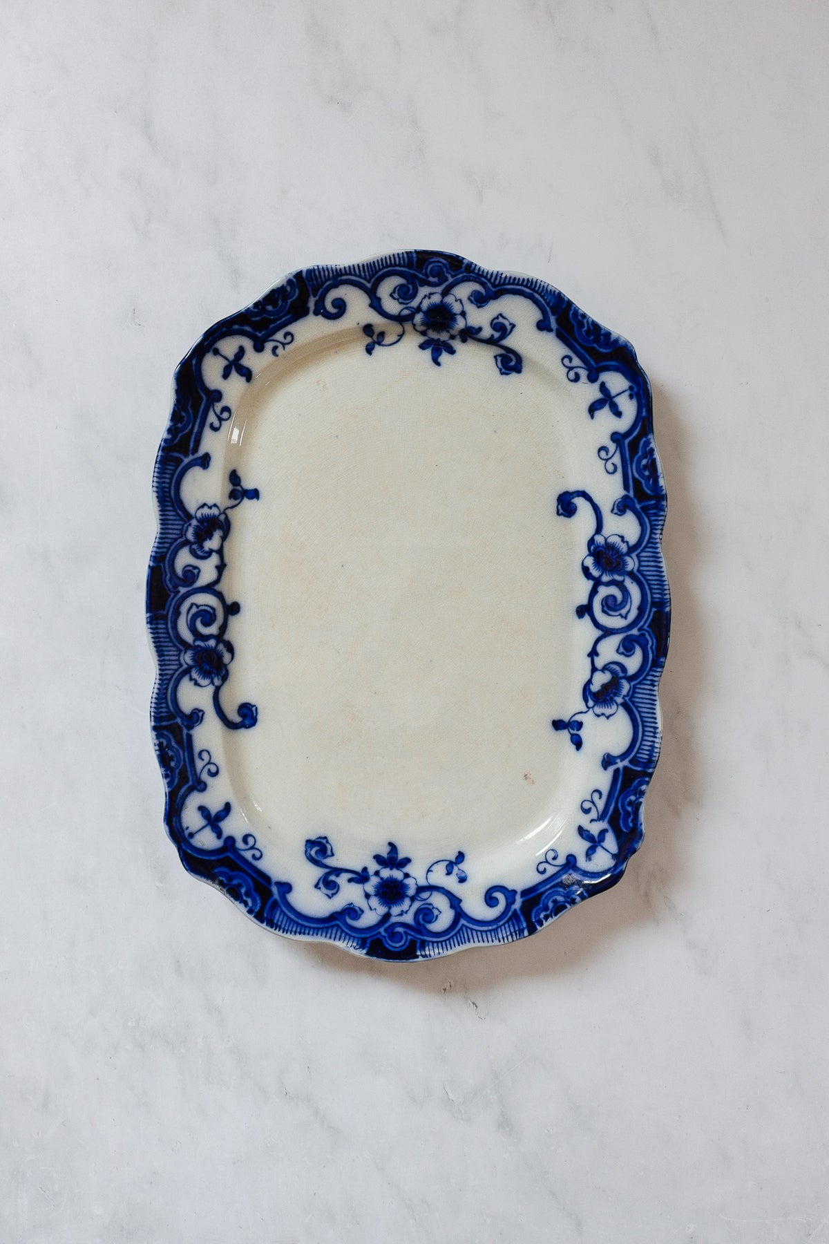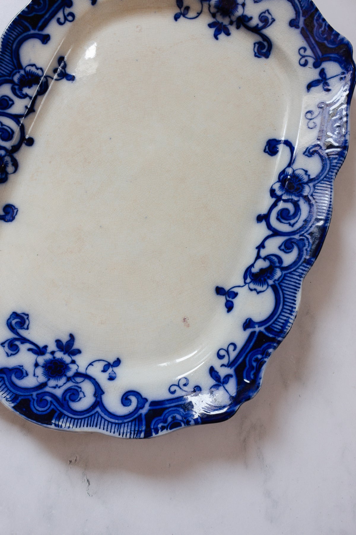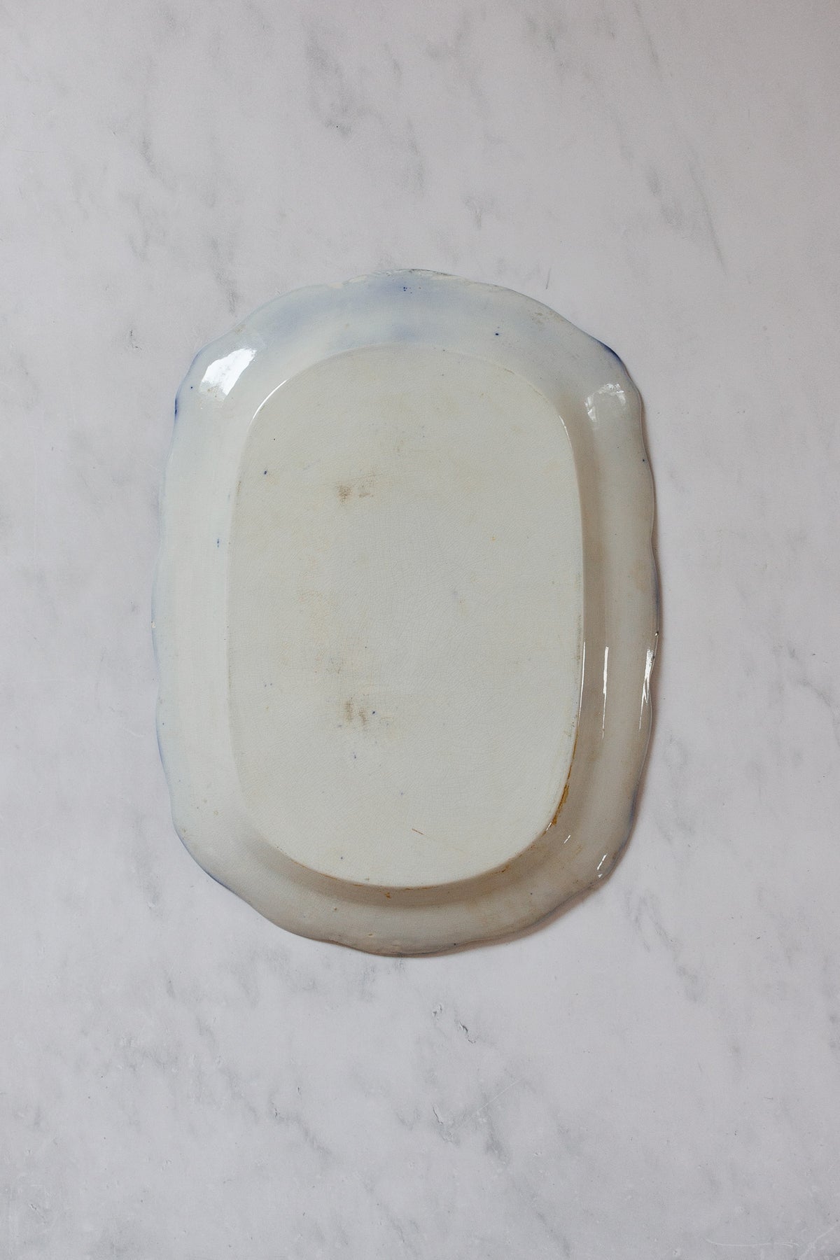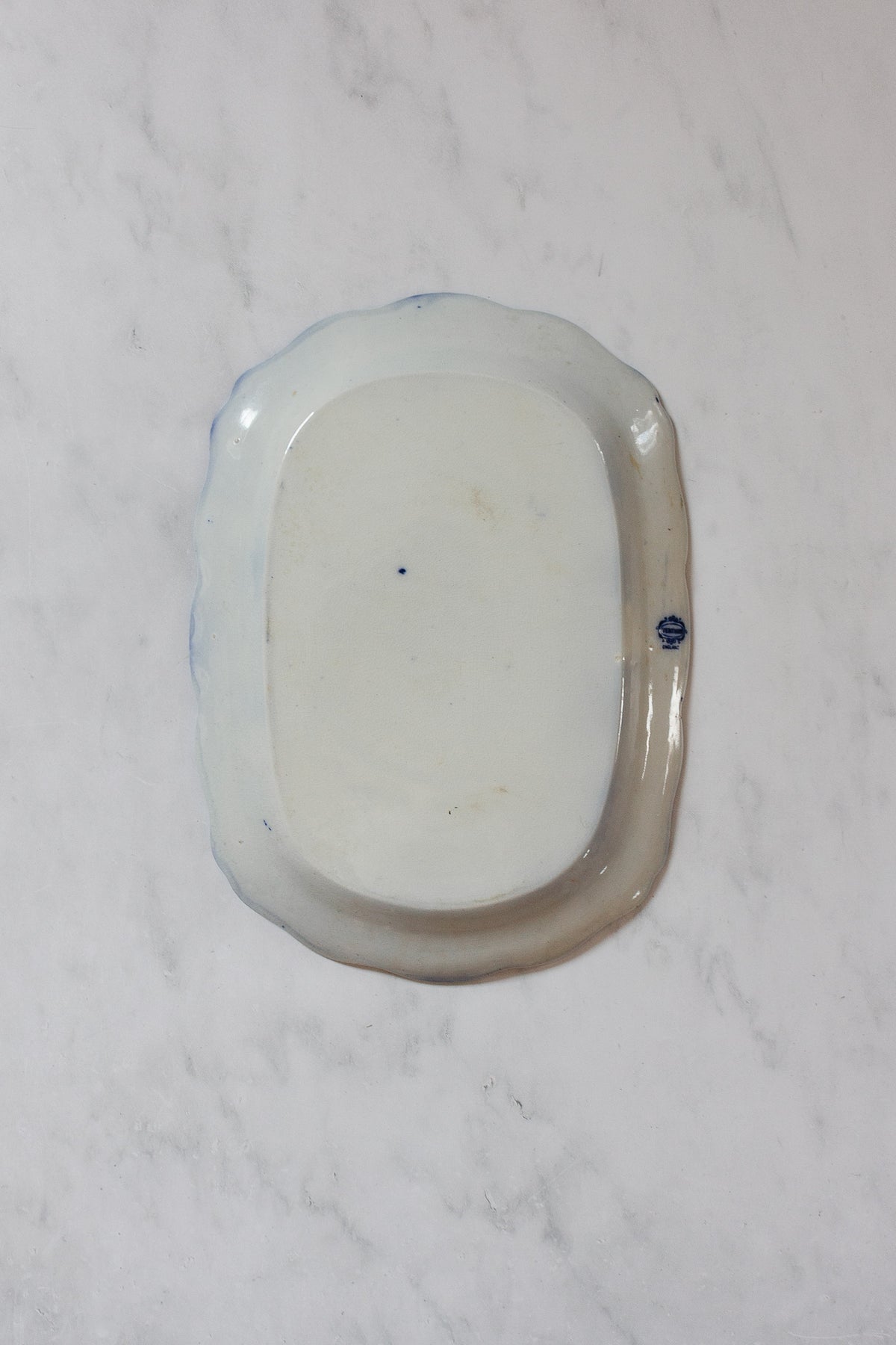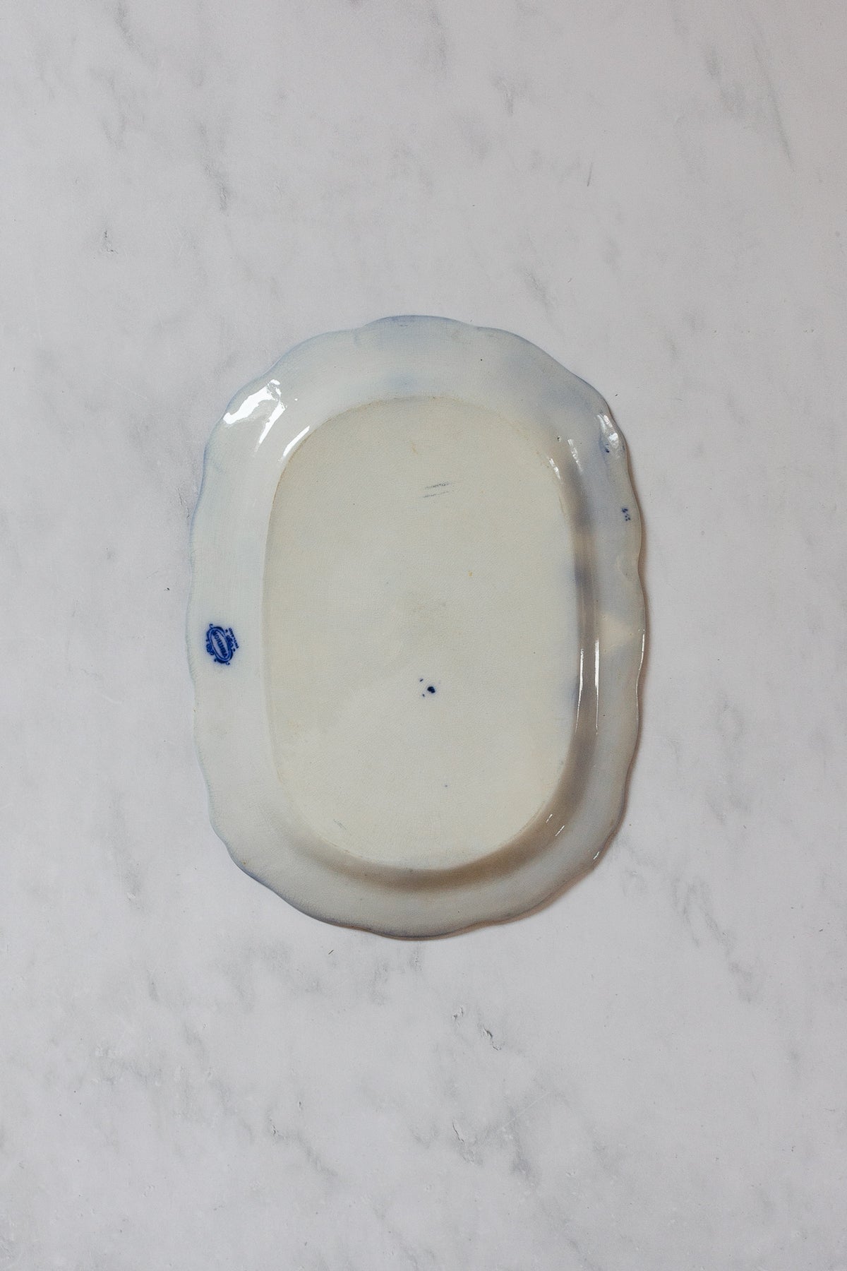 During the late 1830s-1840s, a novel type of blue printed pottery emerged in the market and gained widespread popularity. Referred to as flow blue, its distinctive feature involved allowing the blue printed pattern to seamlessly merge with the glaze while undergoing the firing process.